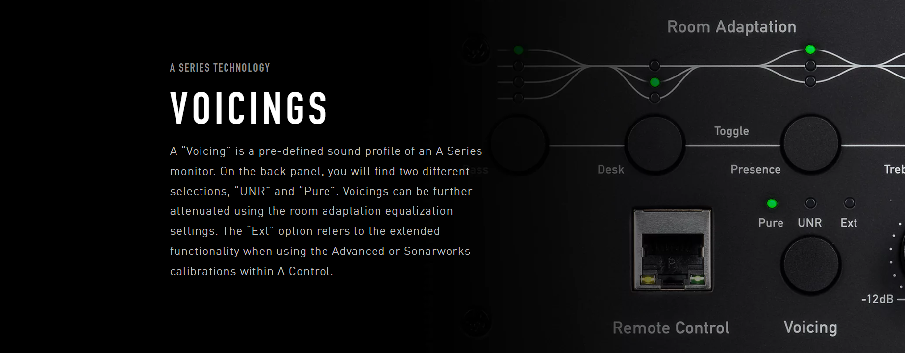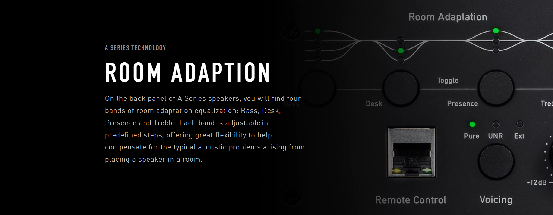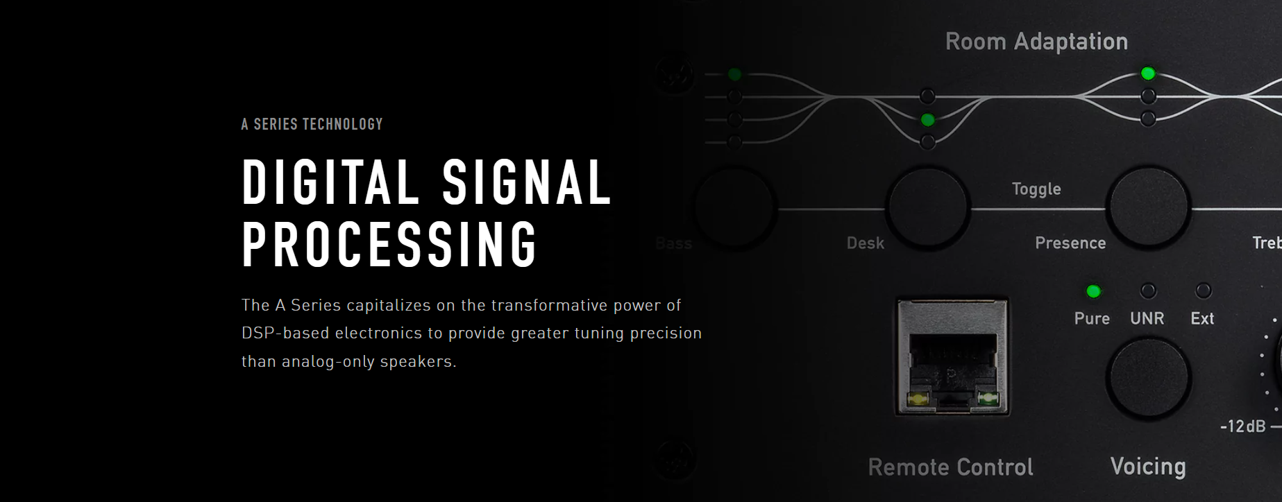 現代監聽喇叭的真正靈魂在於精準的空間適應力。A7V 堅固的機背內置了由強大 DSP (數碼訊號處理) 驅動的聲學調校系統,