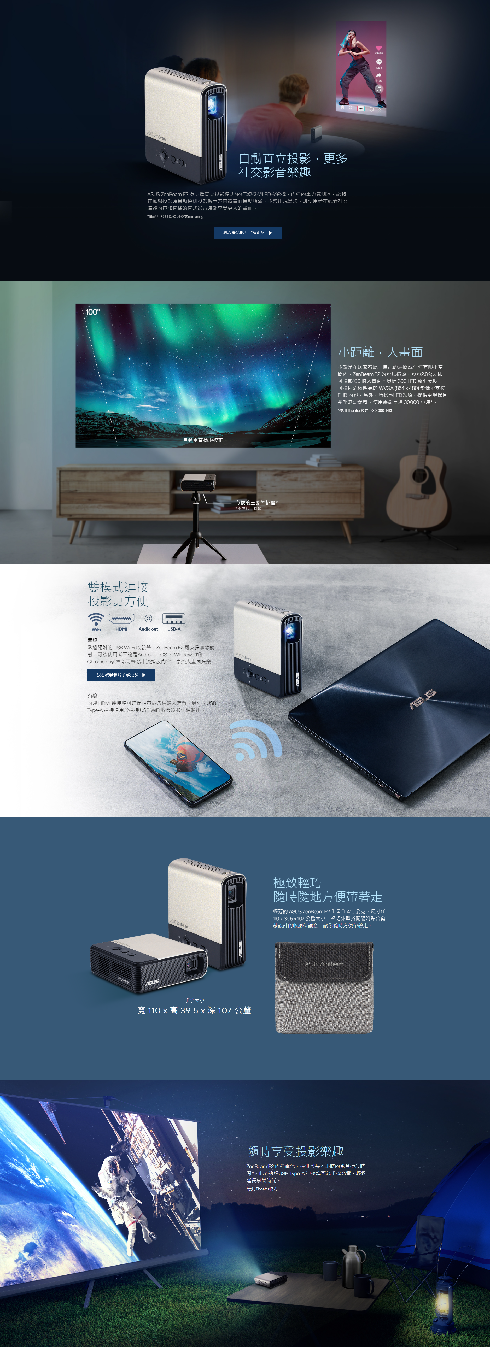 ASUS ZenBeam E2 無線微型LED投影機 自動直立投影 ASUS 便攜式投影機