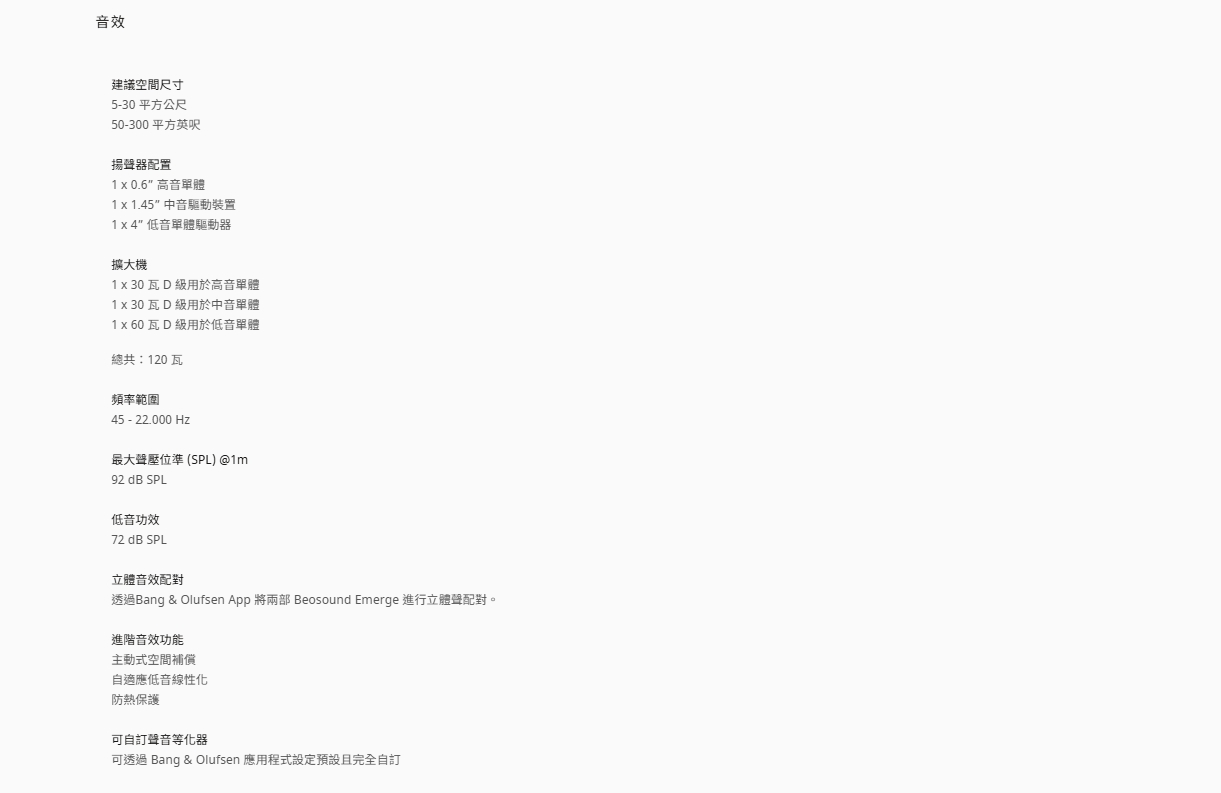喇叭配置包括0.6吋高音、1.45吋中音及4吋側向低音單元,內置三組Class D擴音器