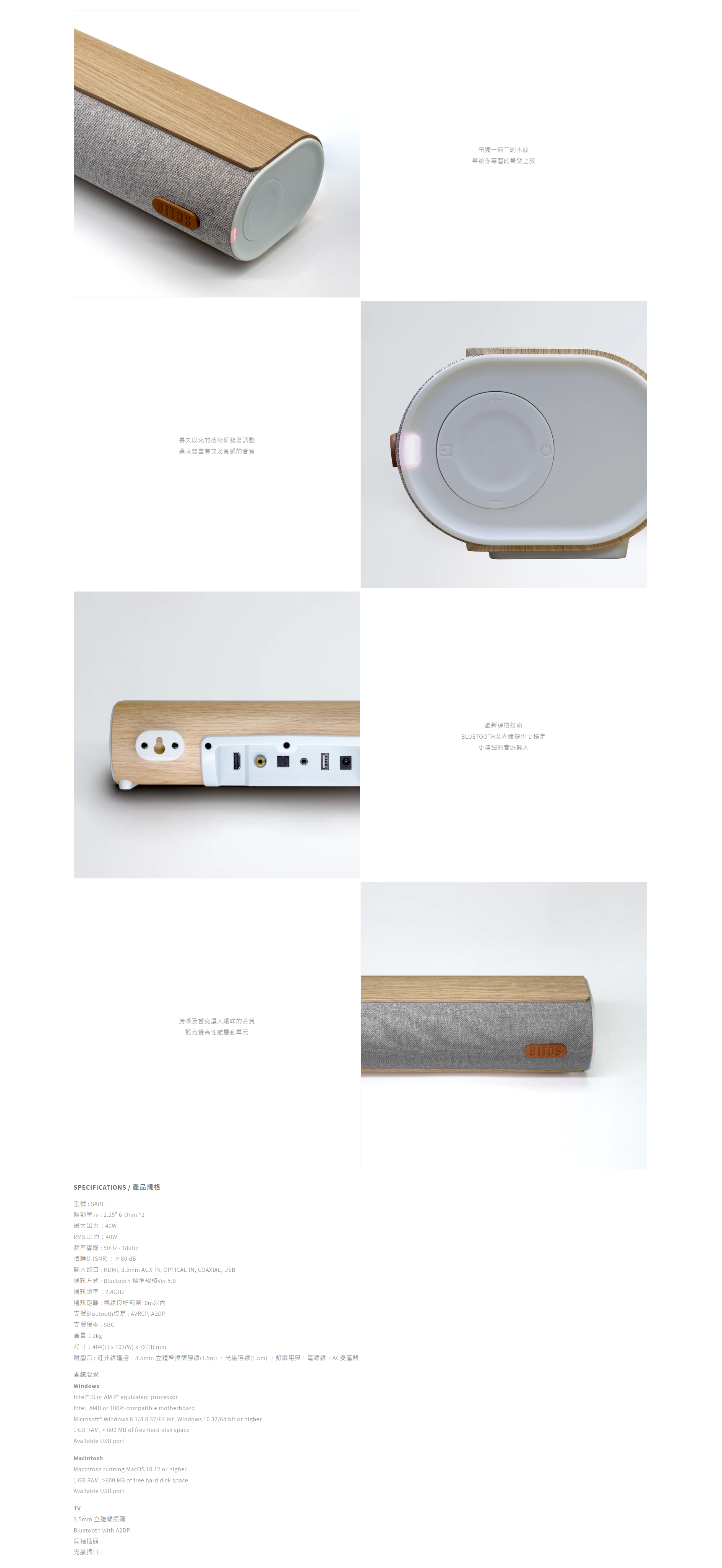 輸入端口 : HDMI, 3.5mm AUX-IN, OPTICAL-IN, COAXIAL, USB