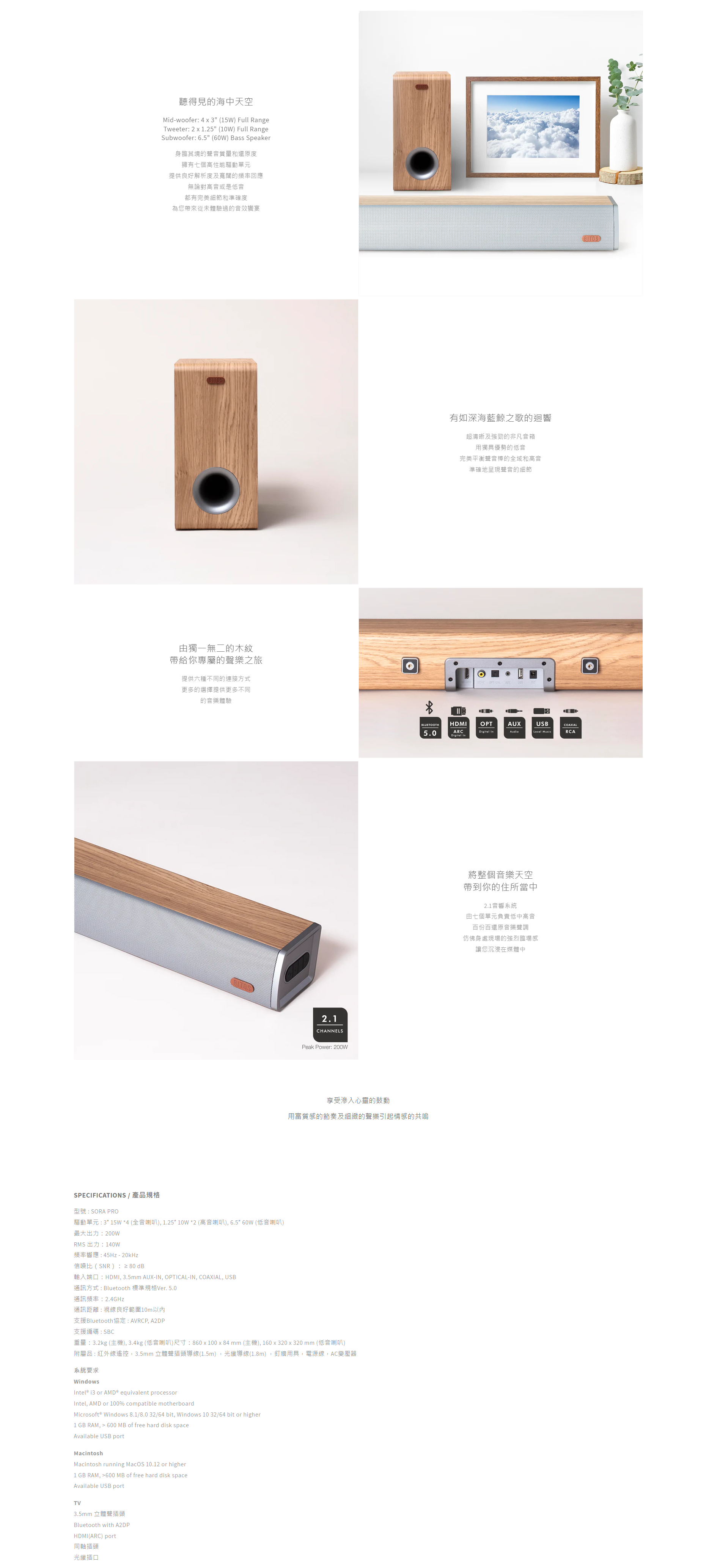 日系品牌 BITOS SORA PRO 2.1 聲道 Soundbar