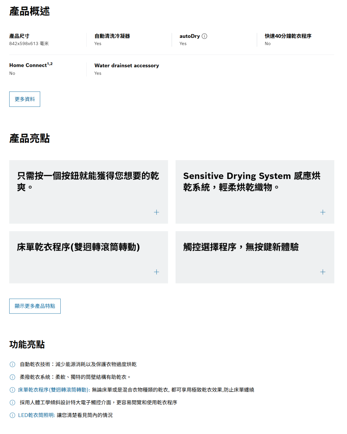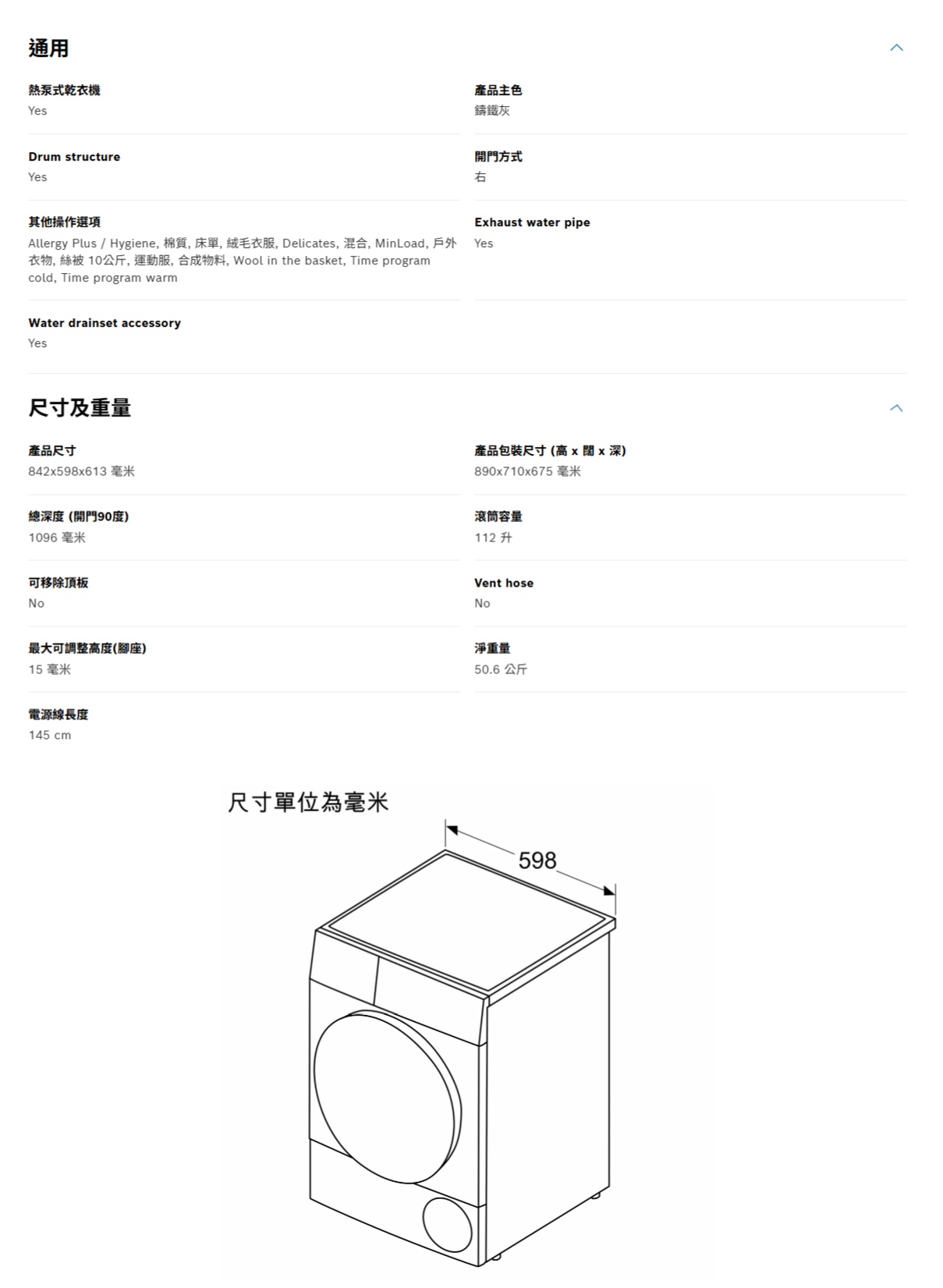 BOSCH WQB254C1HK 博世 10KG Series 6 熱泵式冷凝乾衣機 ⭐全新香港行貨 , 原廠兩年保養