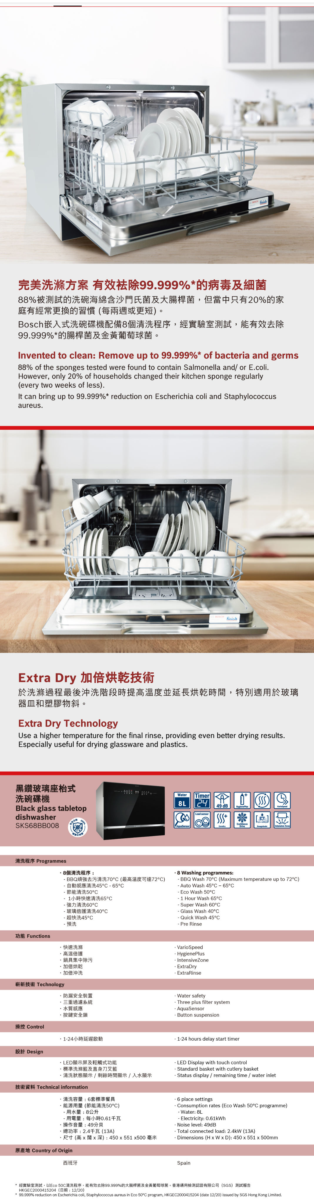 Bosch SKS68BB008 座枱式黑鑽系列洗碗碟機