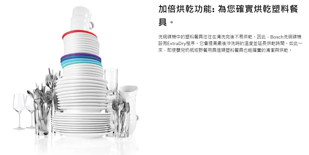 加倍烘乾功能: 為您確實烘乾塑料餐具。