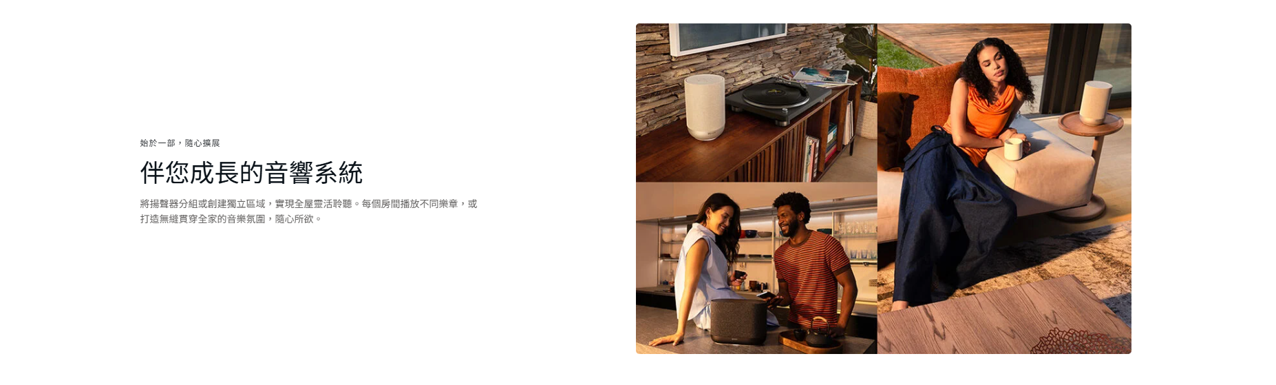 更可輕鬆串聯組成 Multi-room 多房間音樂系統,讓全屋每個角落同步播放著您喜愛的旋律。