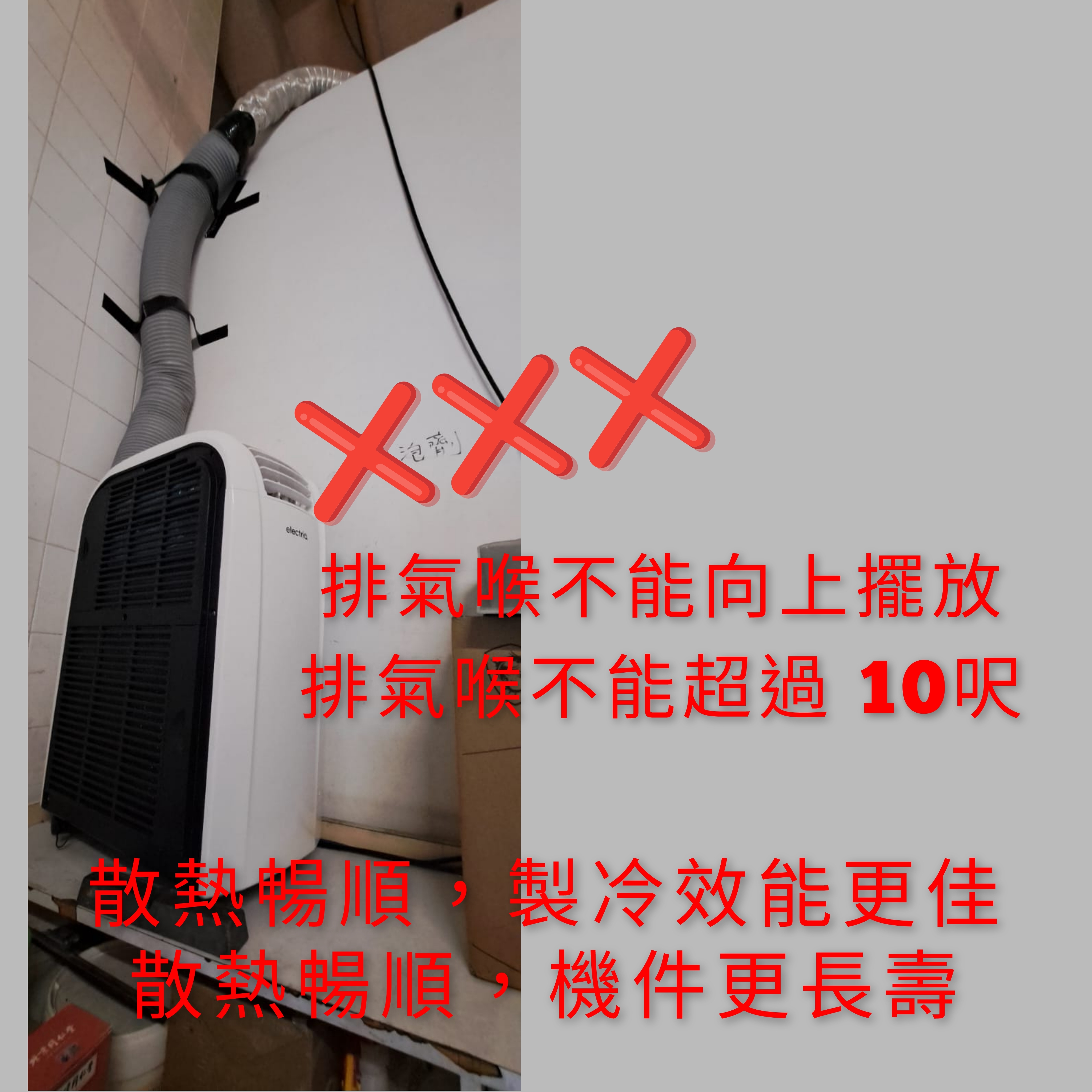 需將排氣管連接至冷氣機,並把排氣管另一端置於窗外 / 門外。