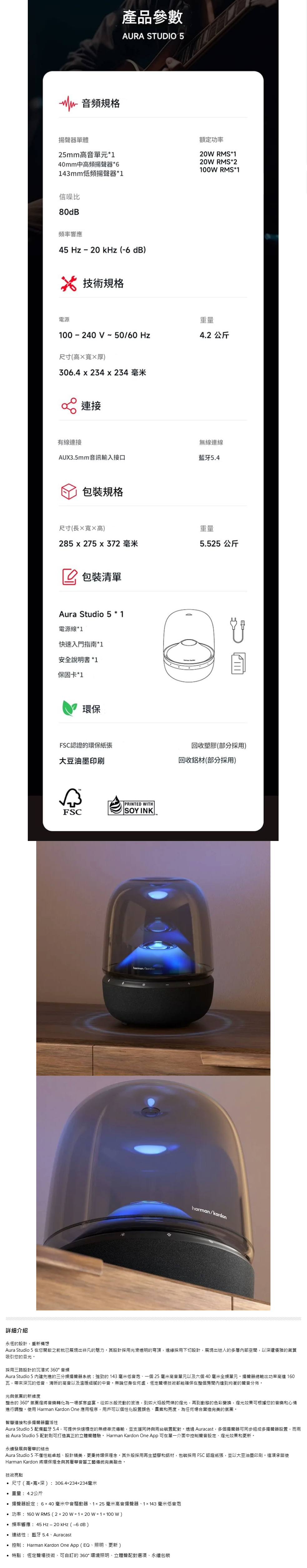 Harman Kardon Aura Studio 5 水母喇叭 ⭐全新香港行貨 , 原廠兩年保養