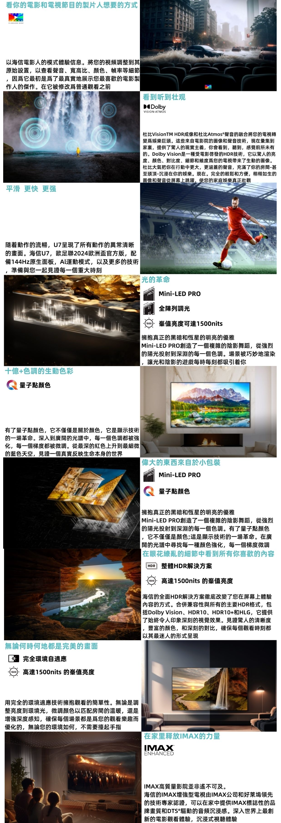 擁有1500nits 高峰值亮度及廣色域,支援Dolby Vision、HDR10+及HLG多種HDR格式,