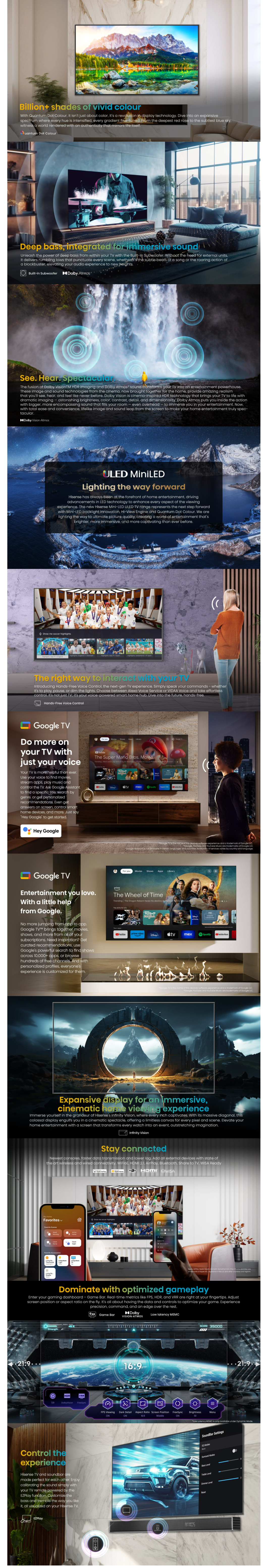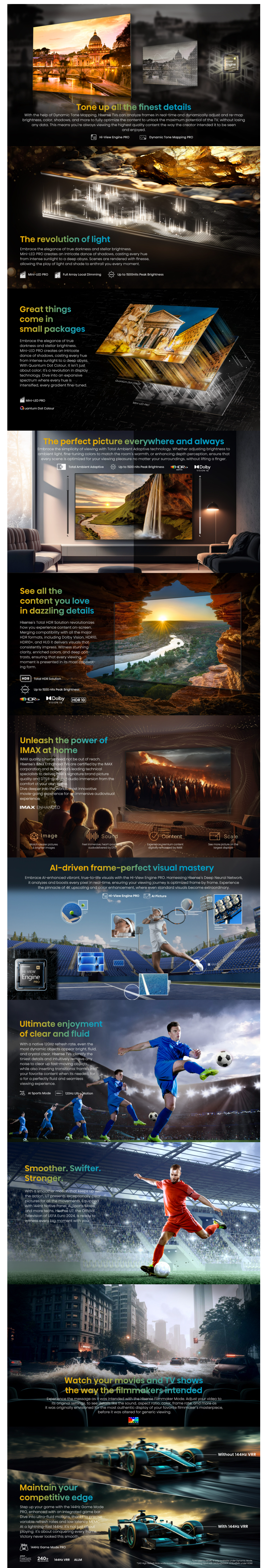 這型號採用 Mini LED 背光及四核 Hi-View Engine PRO 晶片,支援3840x2160 4K解像度,