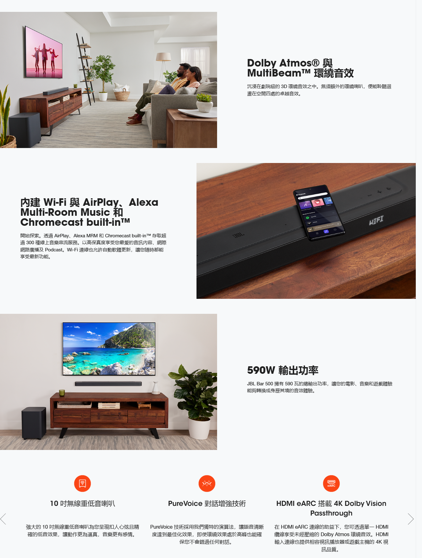 BAR 500 更支援 Dolby Atmos,讓你無論睇戲、打機或聽歌都能享受震撼音效。