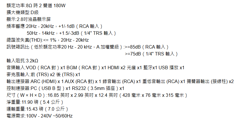 採用頂級元件和材料,以及強大、高效的180瓦雙聲道D類擴音。