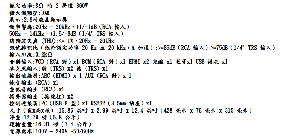 採用頂級元件和材料,以及強大、高效的360瓦雙聲道D類擴音。