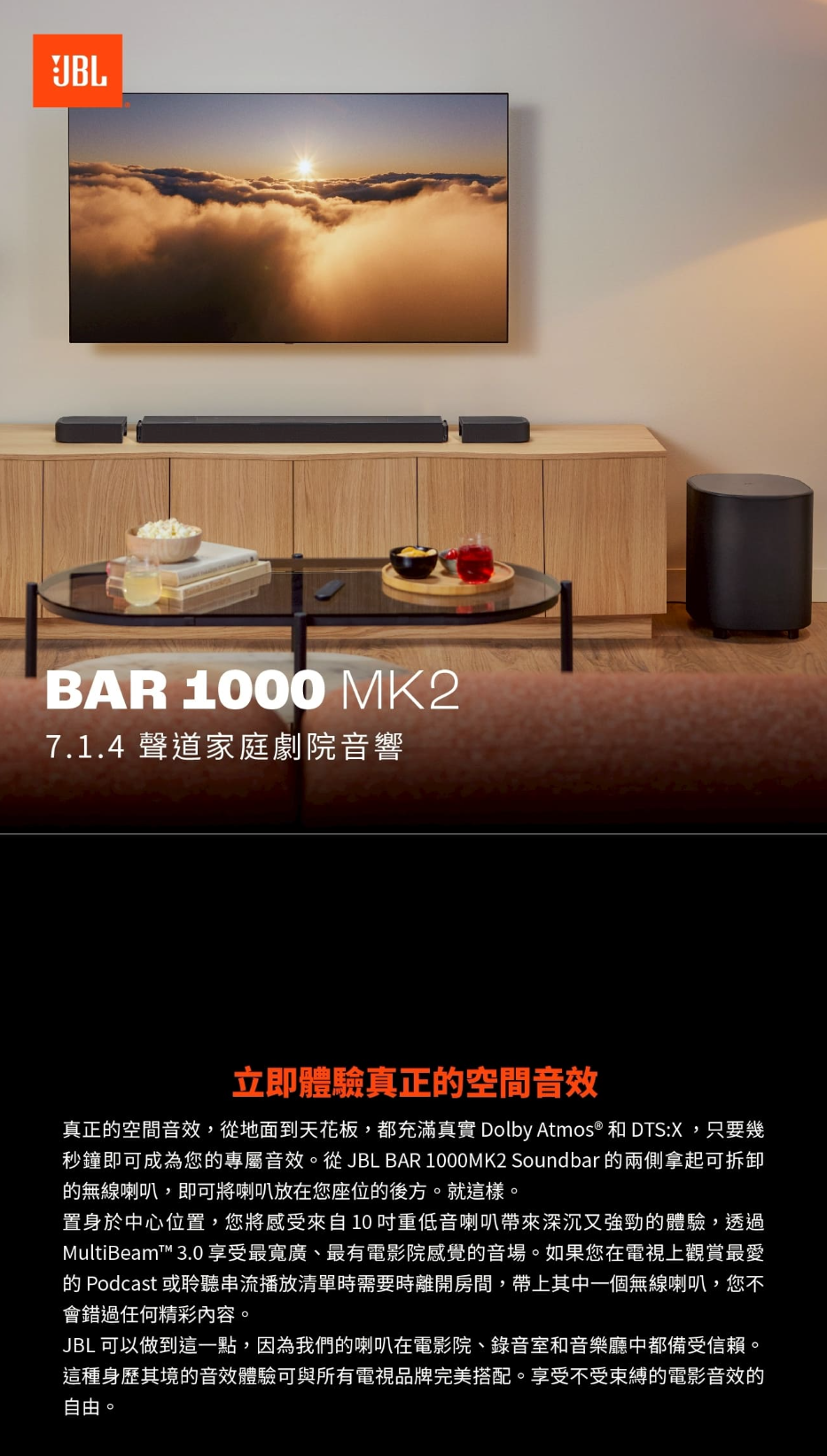 JBL BAR1000MK2 Dolby Atmos Soundbar 是一套全新 7.1.4 聲道真無線環繞音響系統,⭐全新香港行貨 , 原廠一年保養
