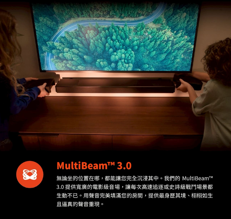 內建10吋無線超低音單元,低頻渾厚震撼,專為戲院級電影效果及強烈遊戲臨場而生。