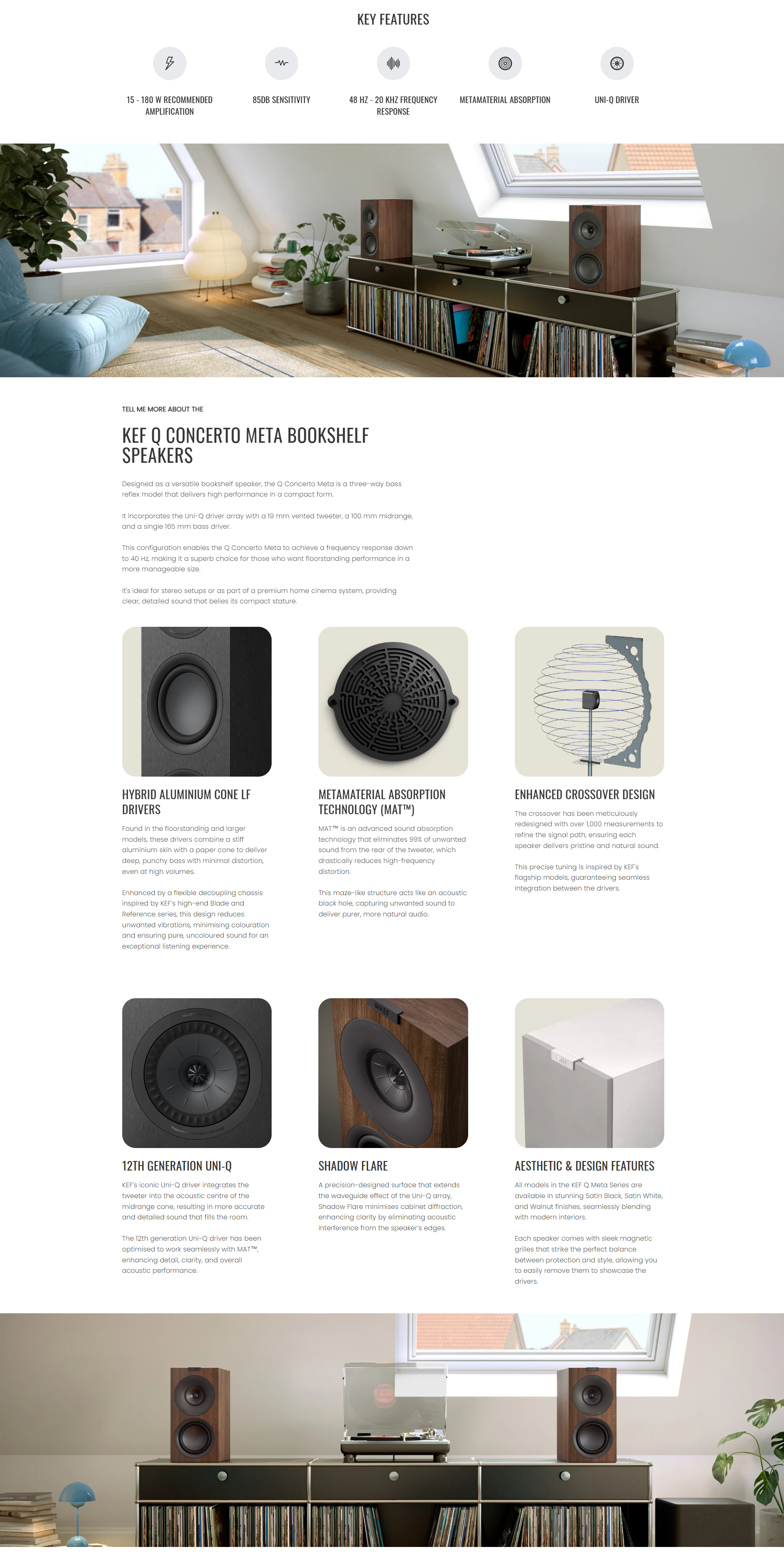 Q Concerto Meta KEF HiFi 揚聲器是我們 Q 系列書架揚聲器中最大的一款。