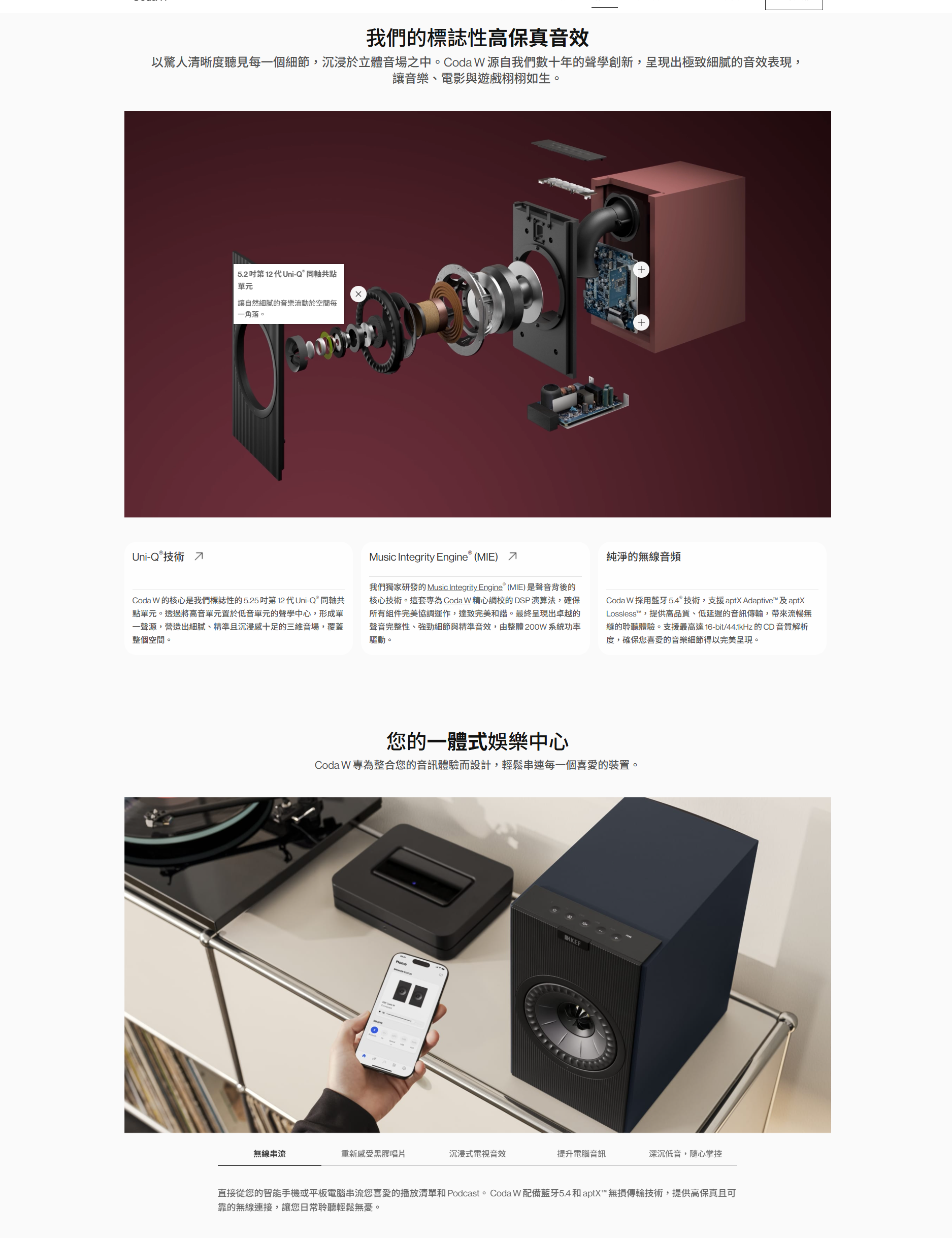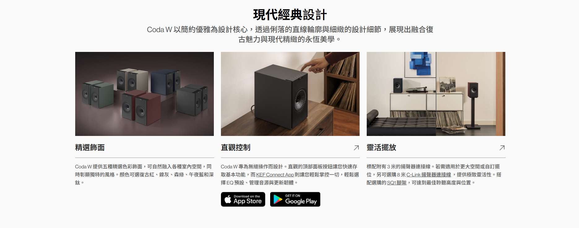 KEF CodaW 無線 HiFi 主動式喇叭集合精準聲學科技與優雅設計的高保真音響系統。