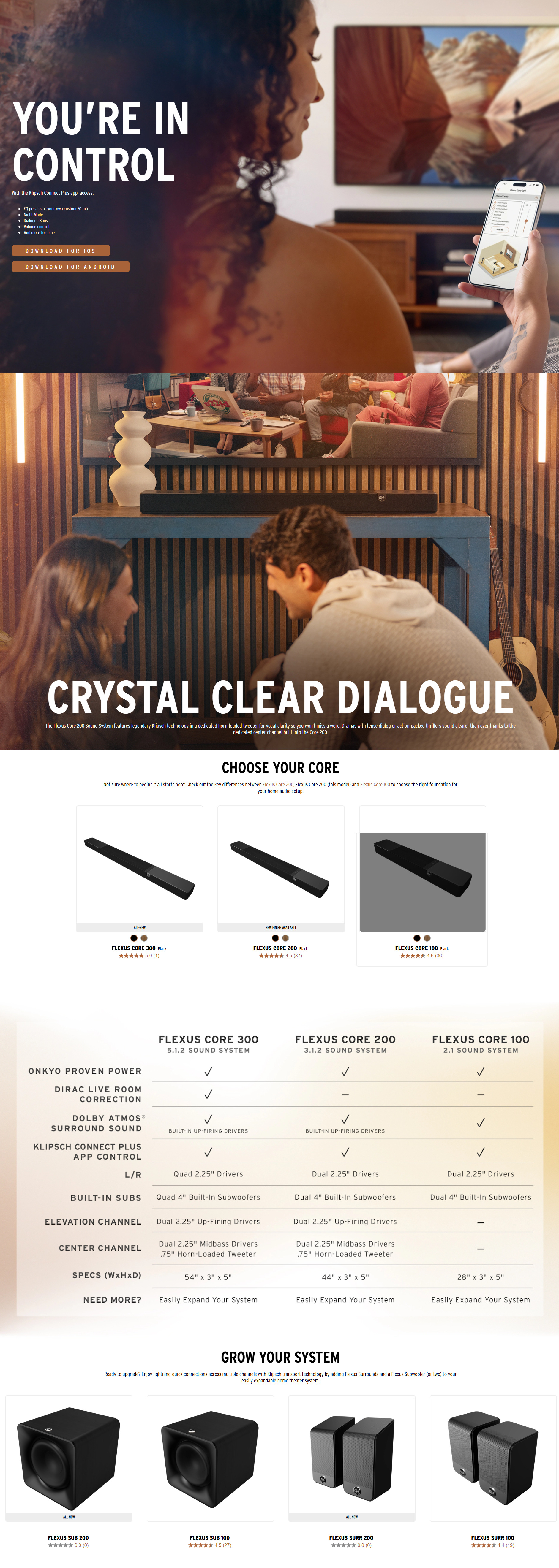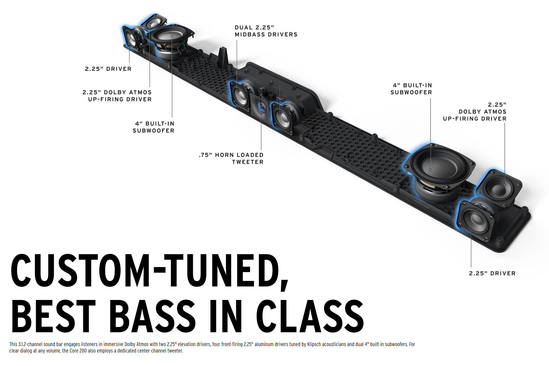 KLIPSCH Flexus Core 200 ⭐全新香港行貨 , 原廠一年保養 , KLIPSCH 3.1.2 聲道 Dolby Atmos SoundBar 主打沉浸式立體聲效及卓越對白表現,