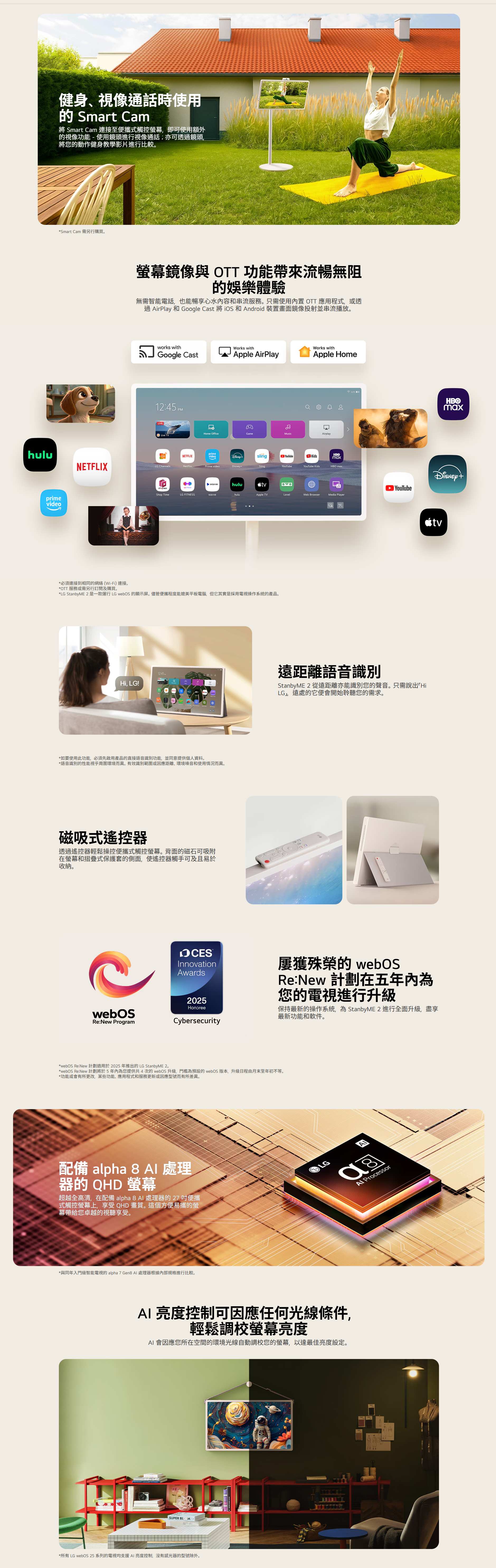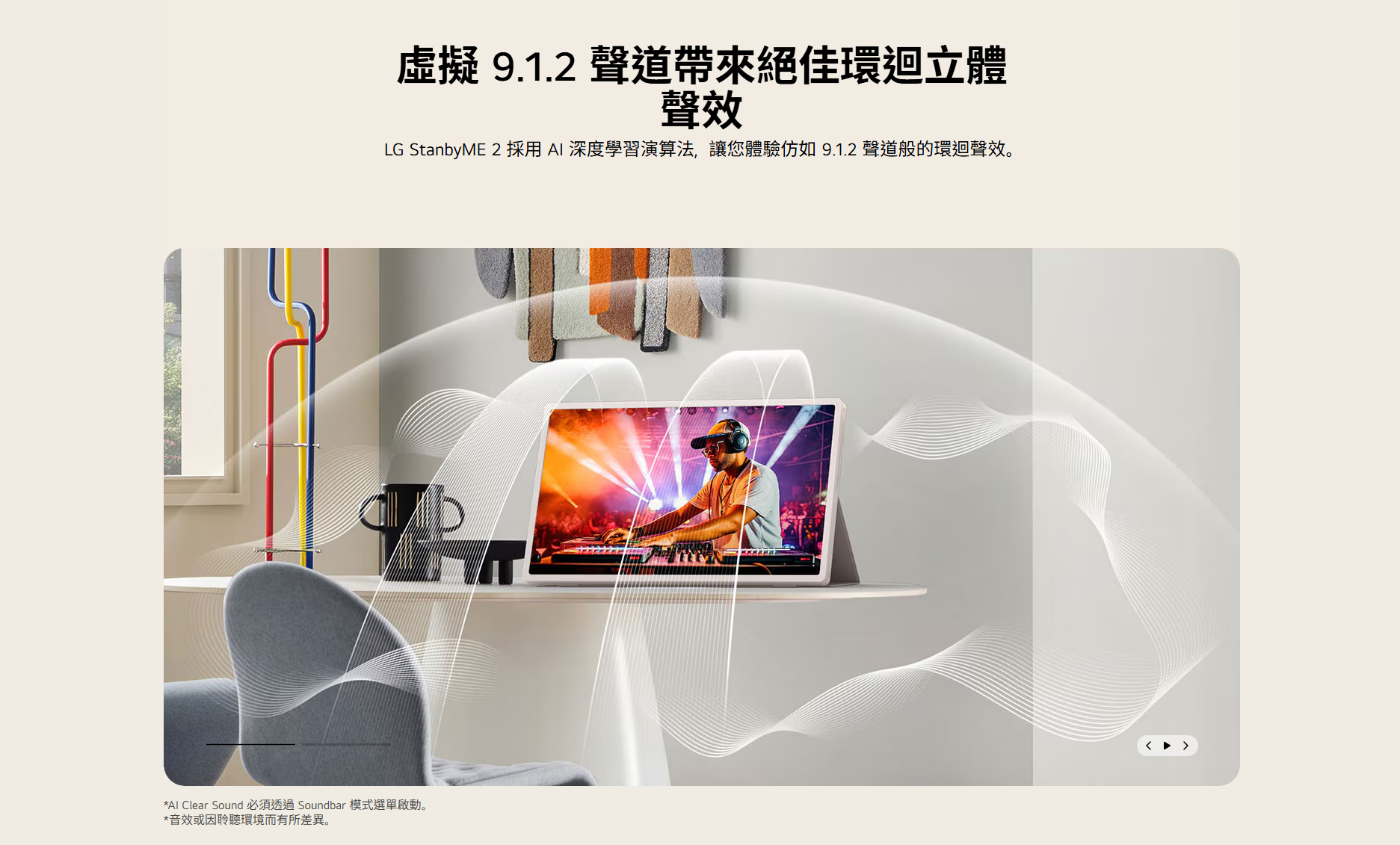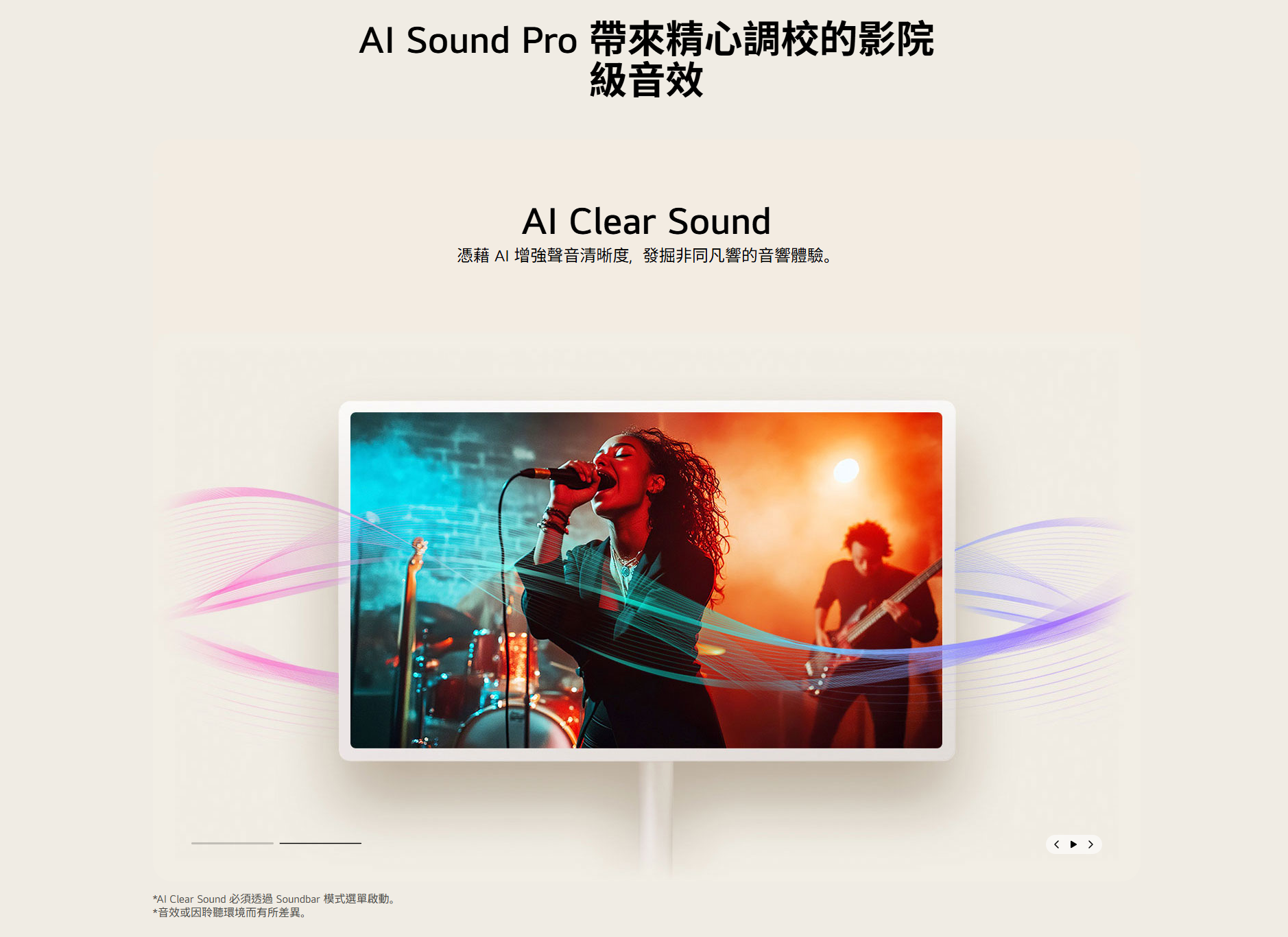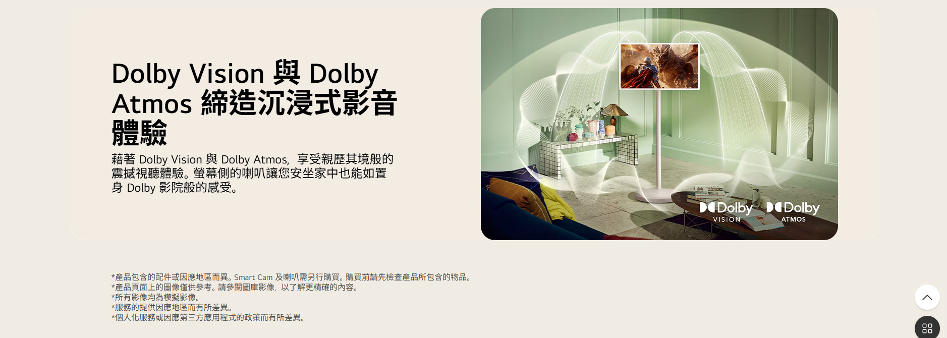 支援 Dolby Vision、Dolby Atmos 及 AI 虛擬 9.1.2 環繞音效,加上畫面會根據環境光動態優化,
