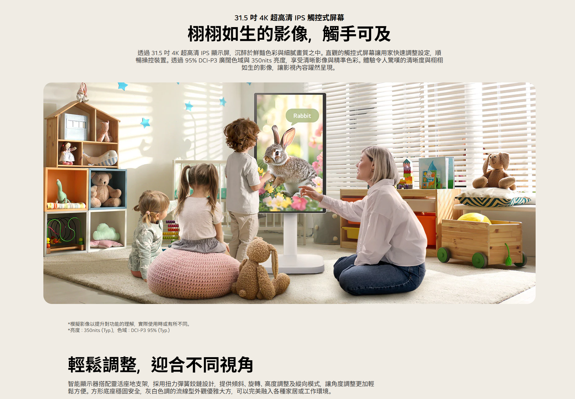 是現代家庭和辦公場所的理想選擇。採用4K UHD (3840x2160) IPS觸控屏幕,