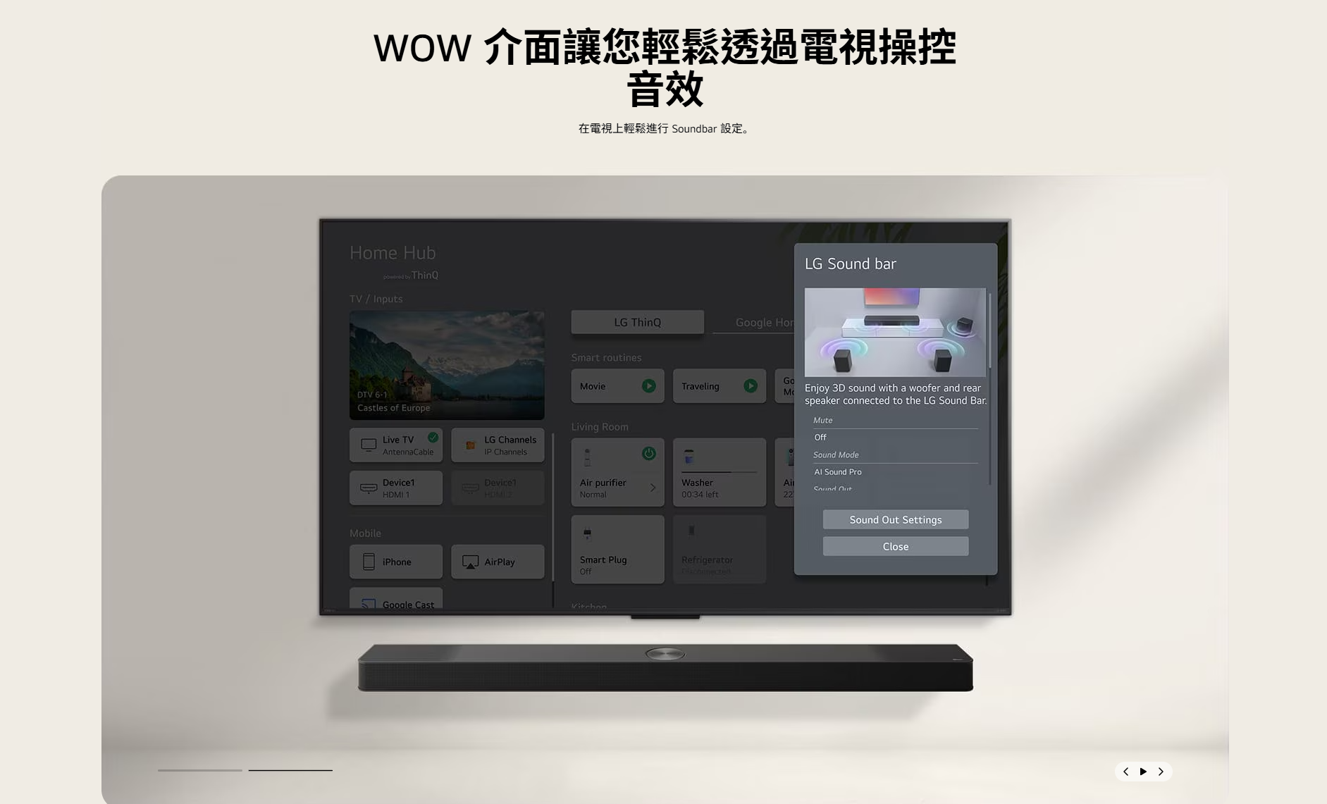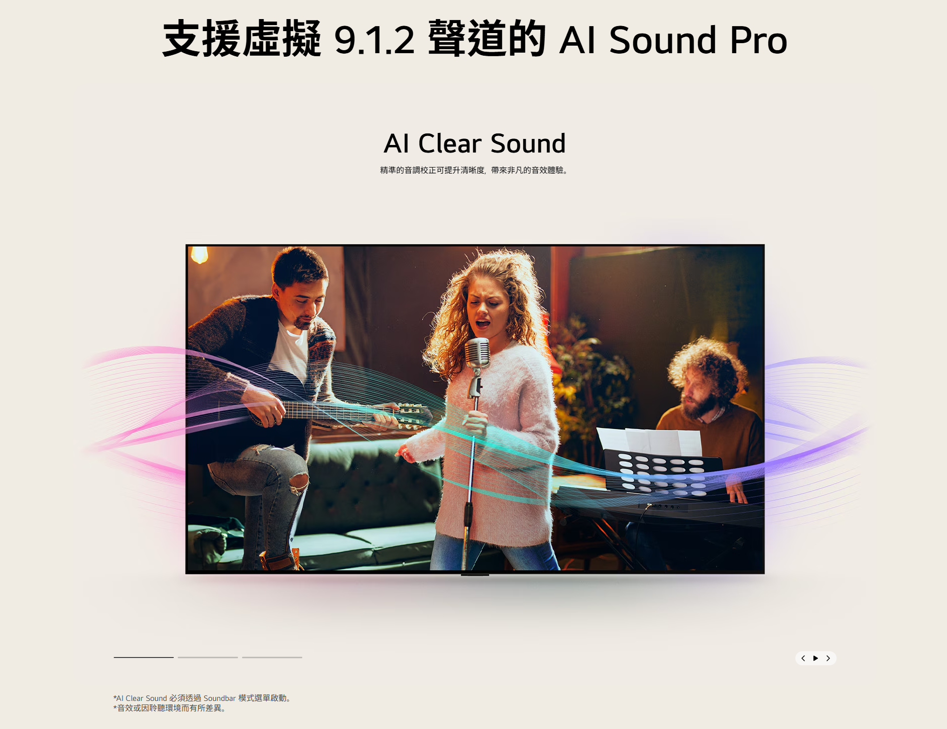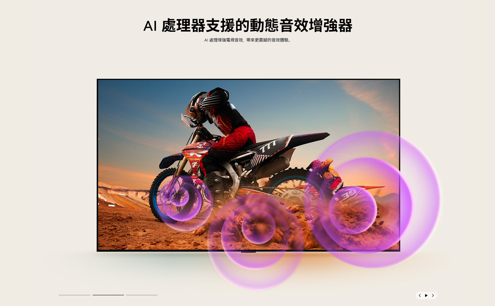 內置 alpha 8 Gen2 AI 處理器提供 4K 畫質、升級影像和環迴立體音效