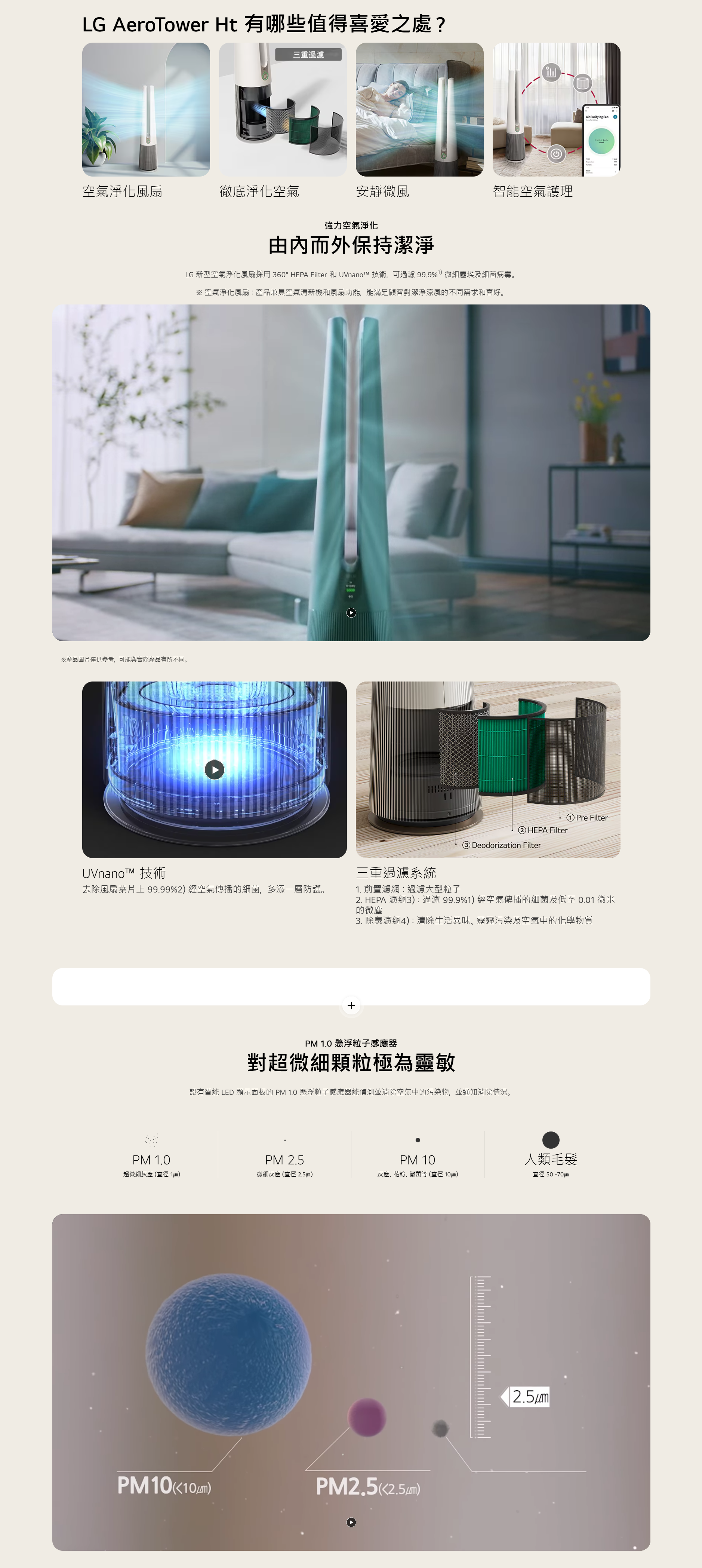 LG FS15GPBK0 韓國製造 新型強力空氣淨化風扇採用 360° HEPA Filter 和 UVnano™ 技術,可過濾 99.9% 微細塵埃及細菌病毒。