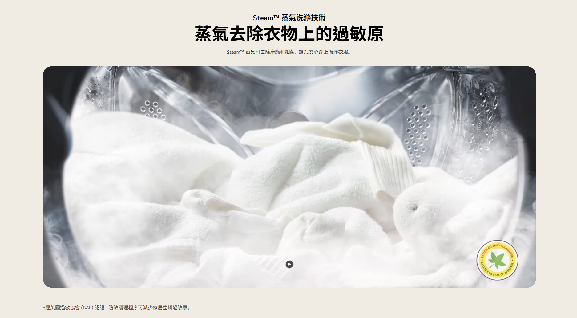 呵護每一件衣物。配備Steam™蒸氣防敏護理,有效去除99.9%致敏原