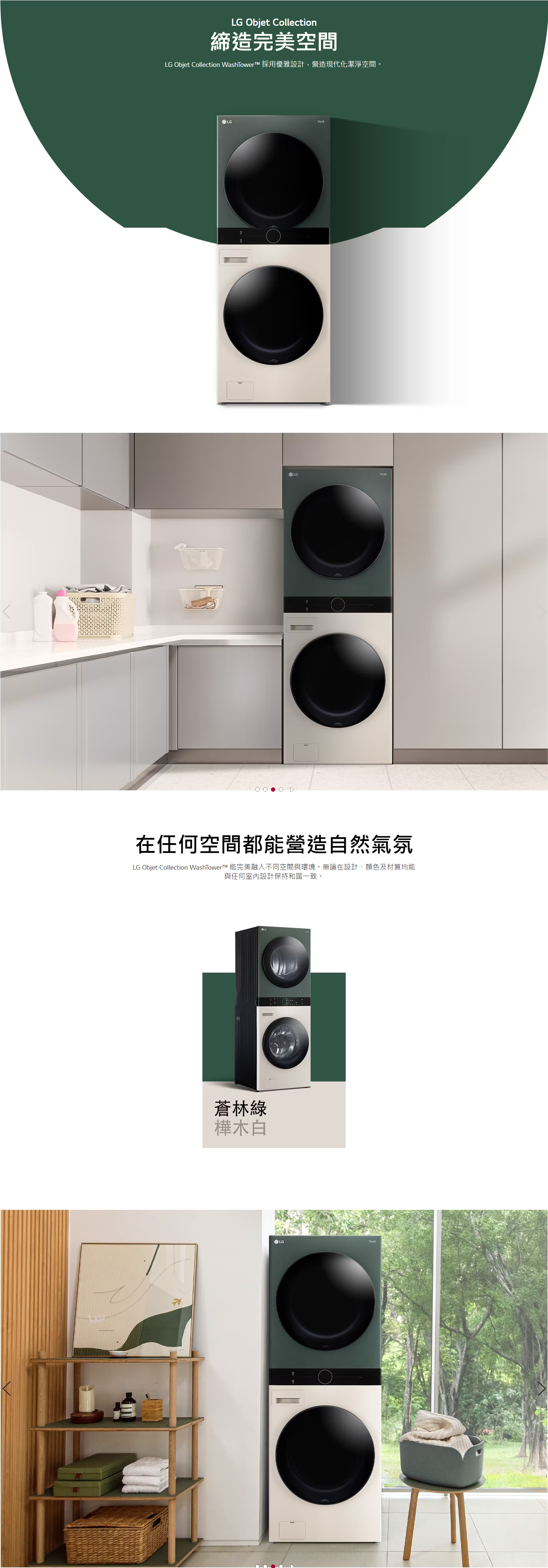 LG Objet Collection WashTower™ 採用優雅設計,營造現代化潔淨空間。