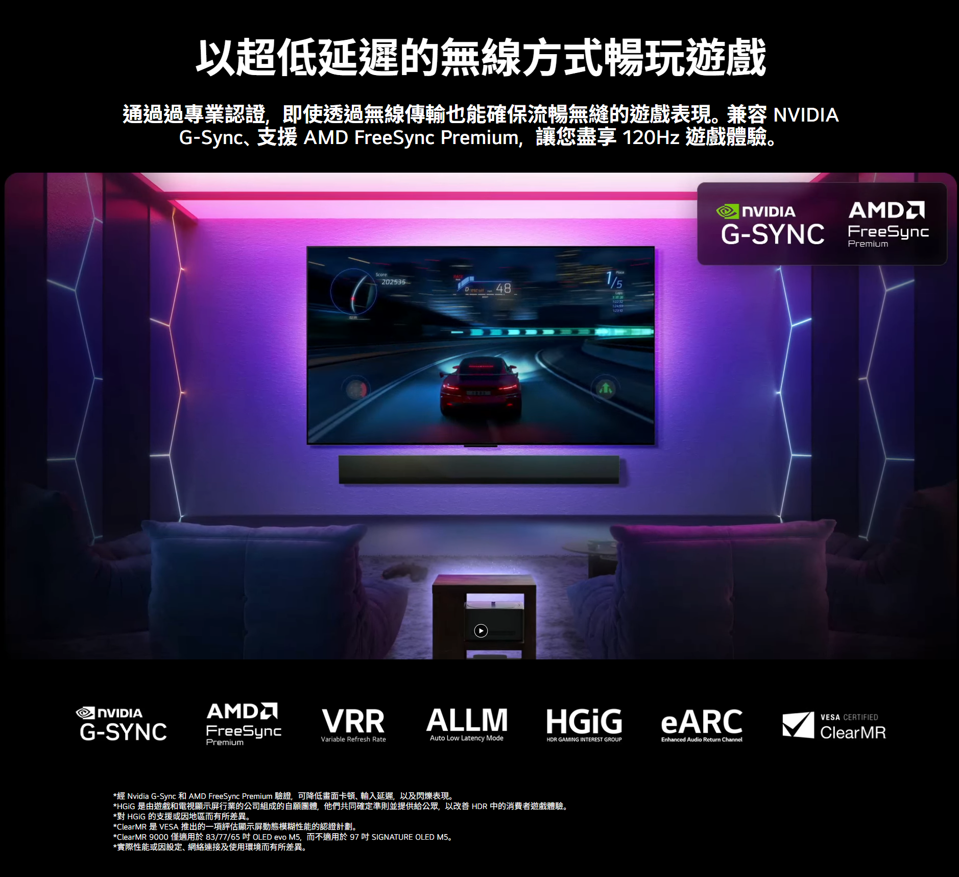 Dolby Atmos、Dolby Vision、VRR、G-sync 及 Freesync 締造使人陶醉的娛樂體驗。