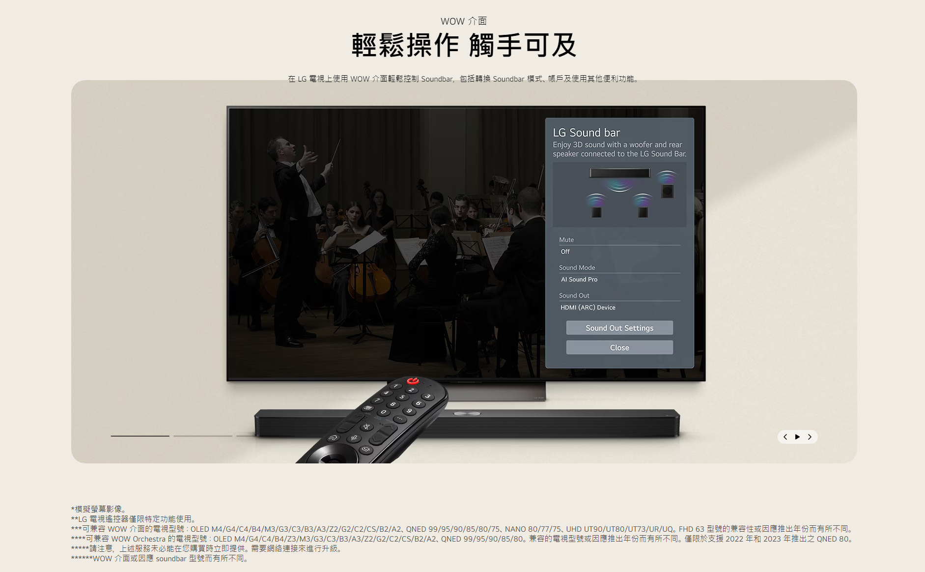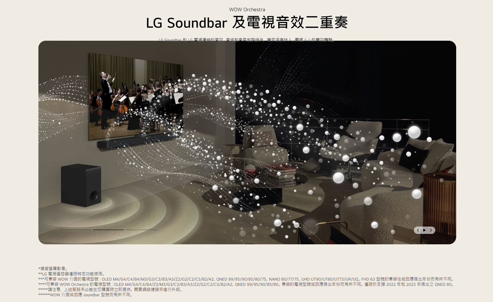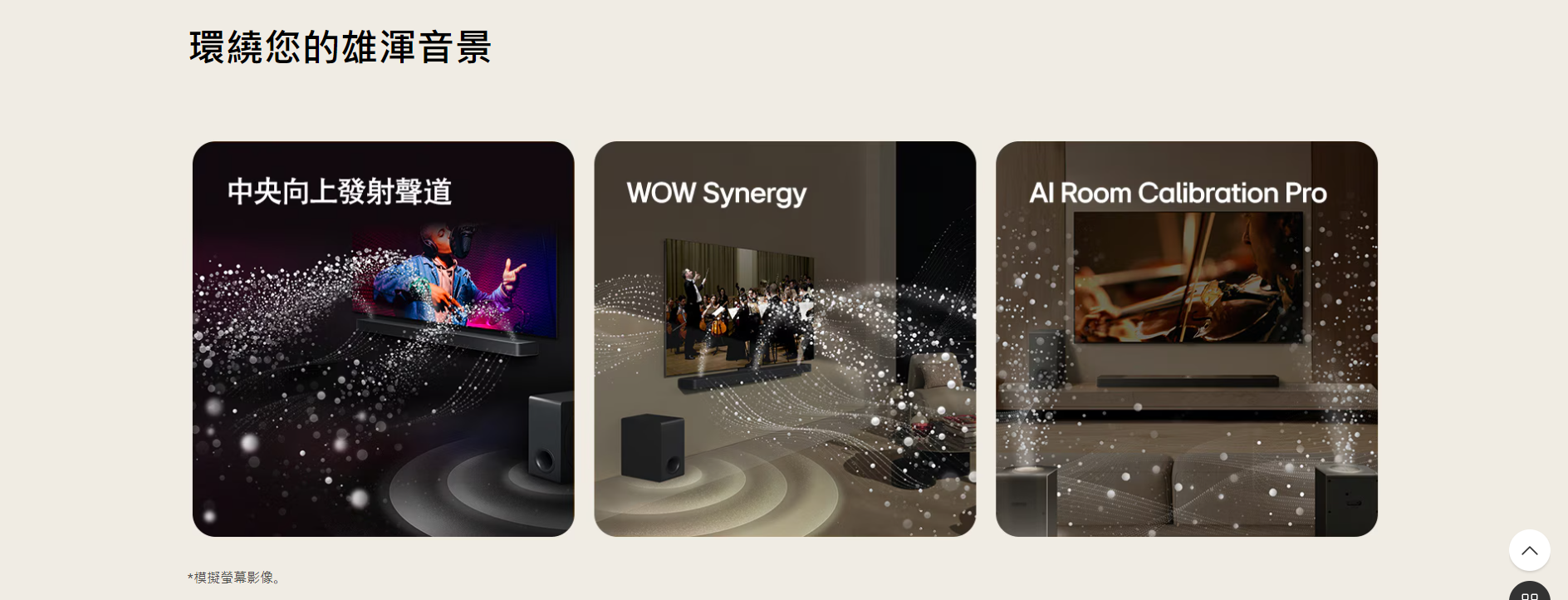 810W輸出 9.1.5 環迴立體聲道、重低音喇叭,加上向上發射後置喇叭,助您提升 LG 電視音效