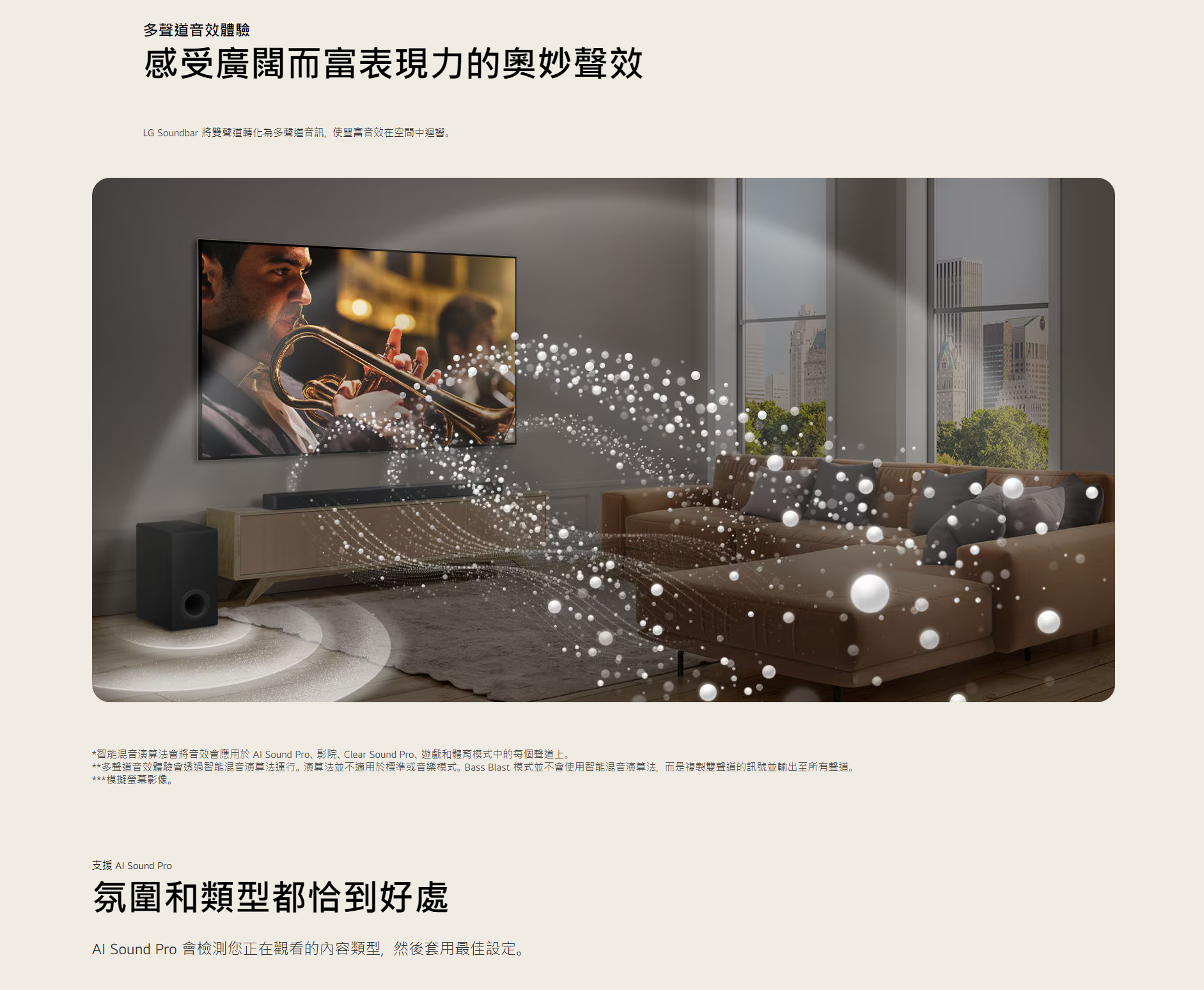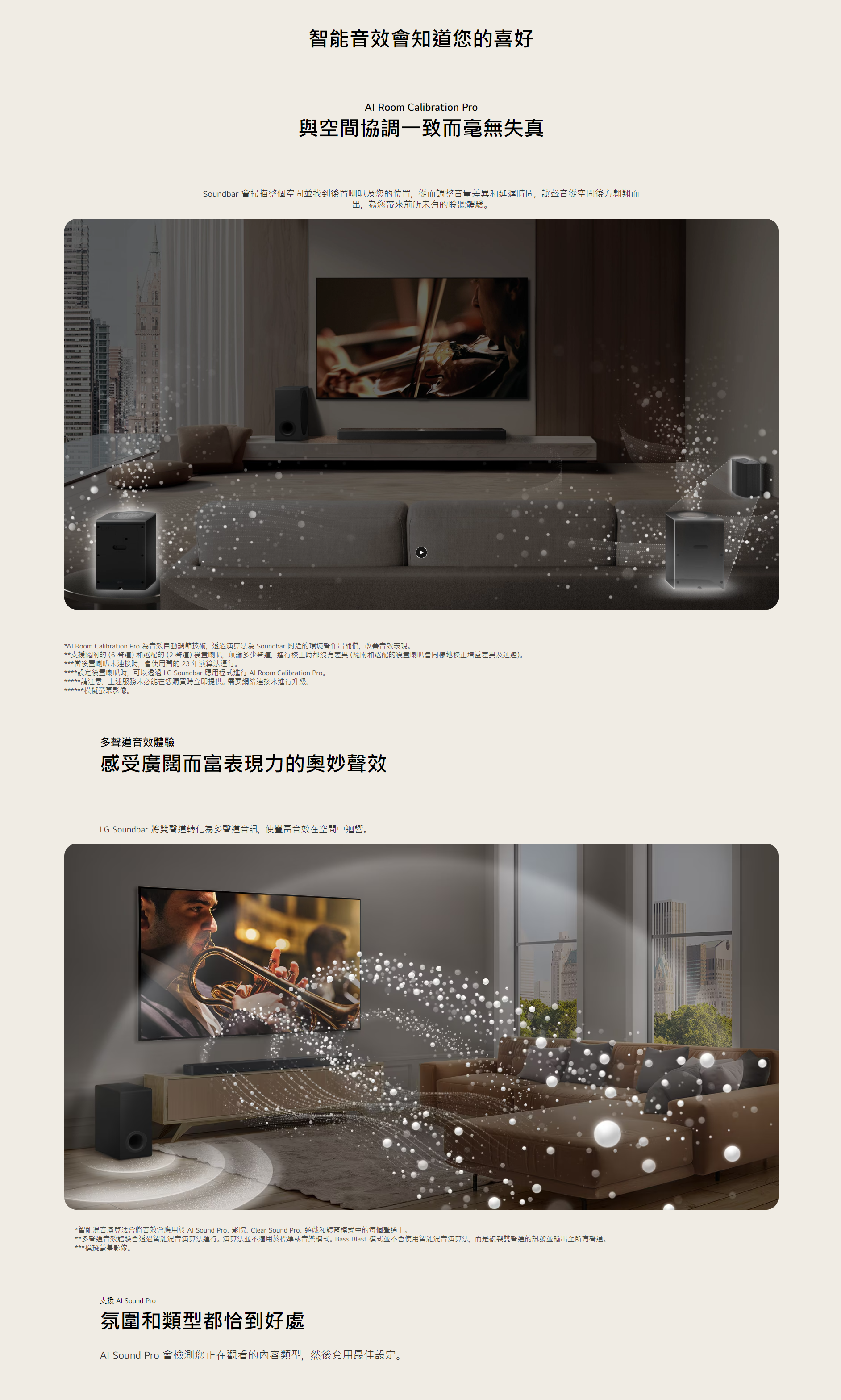 AI Sound Pro 會檢測您正在觀看的內容類型,然後套用最佳設定。