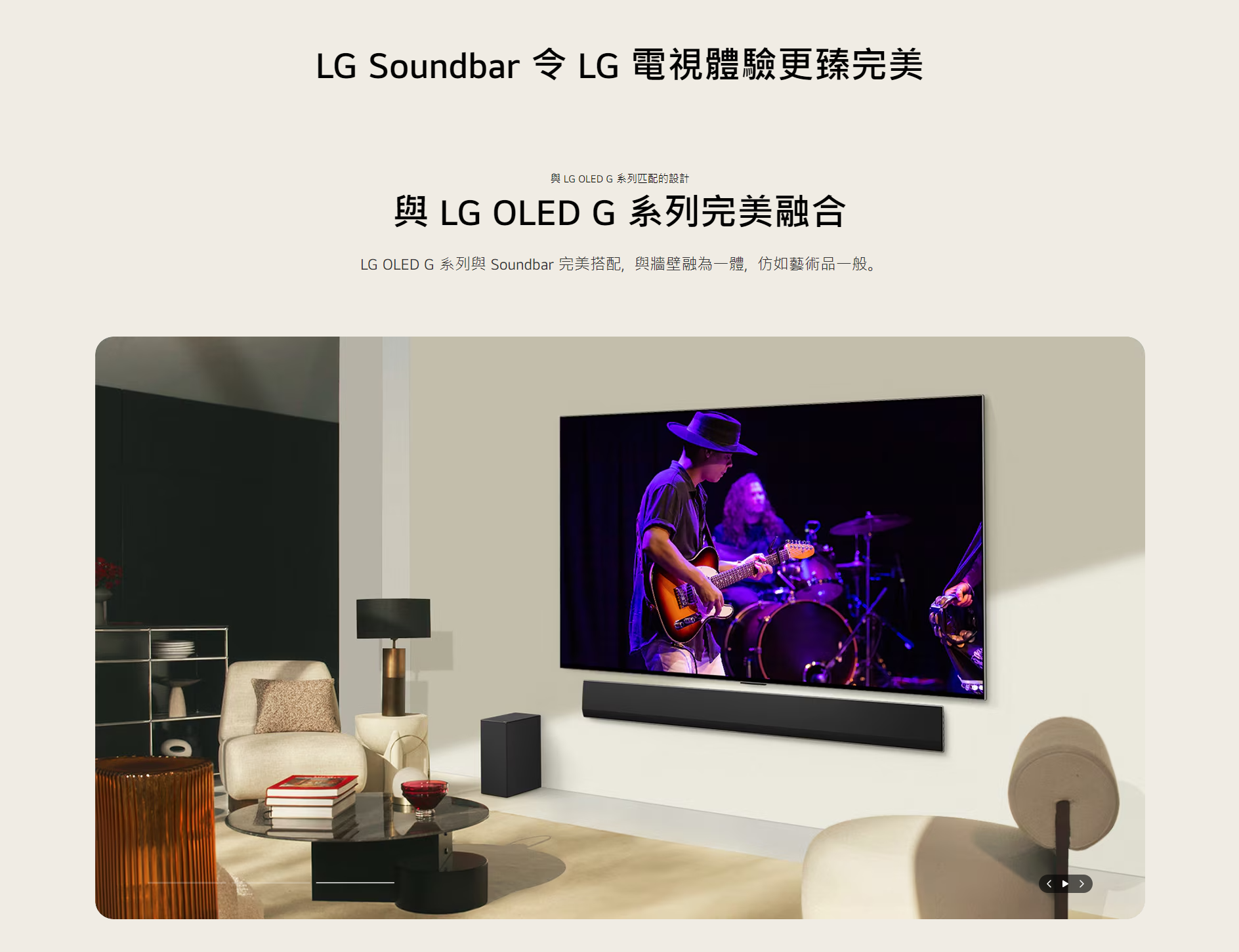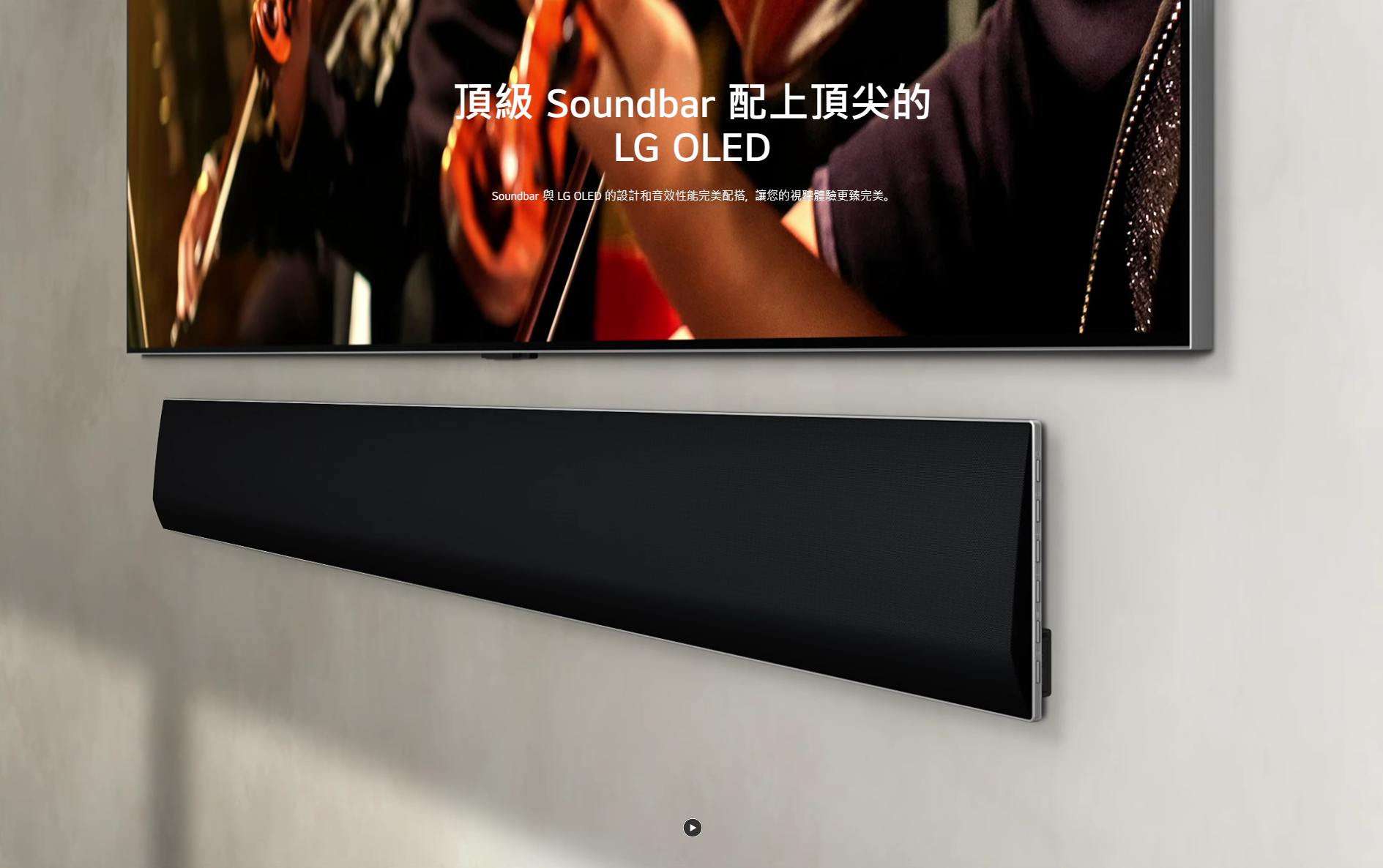 LG OLED G 系列與 Soundbar 完美搭配,與牆壁融為一體,仿如藝術品一般。