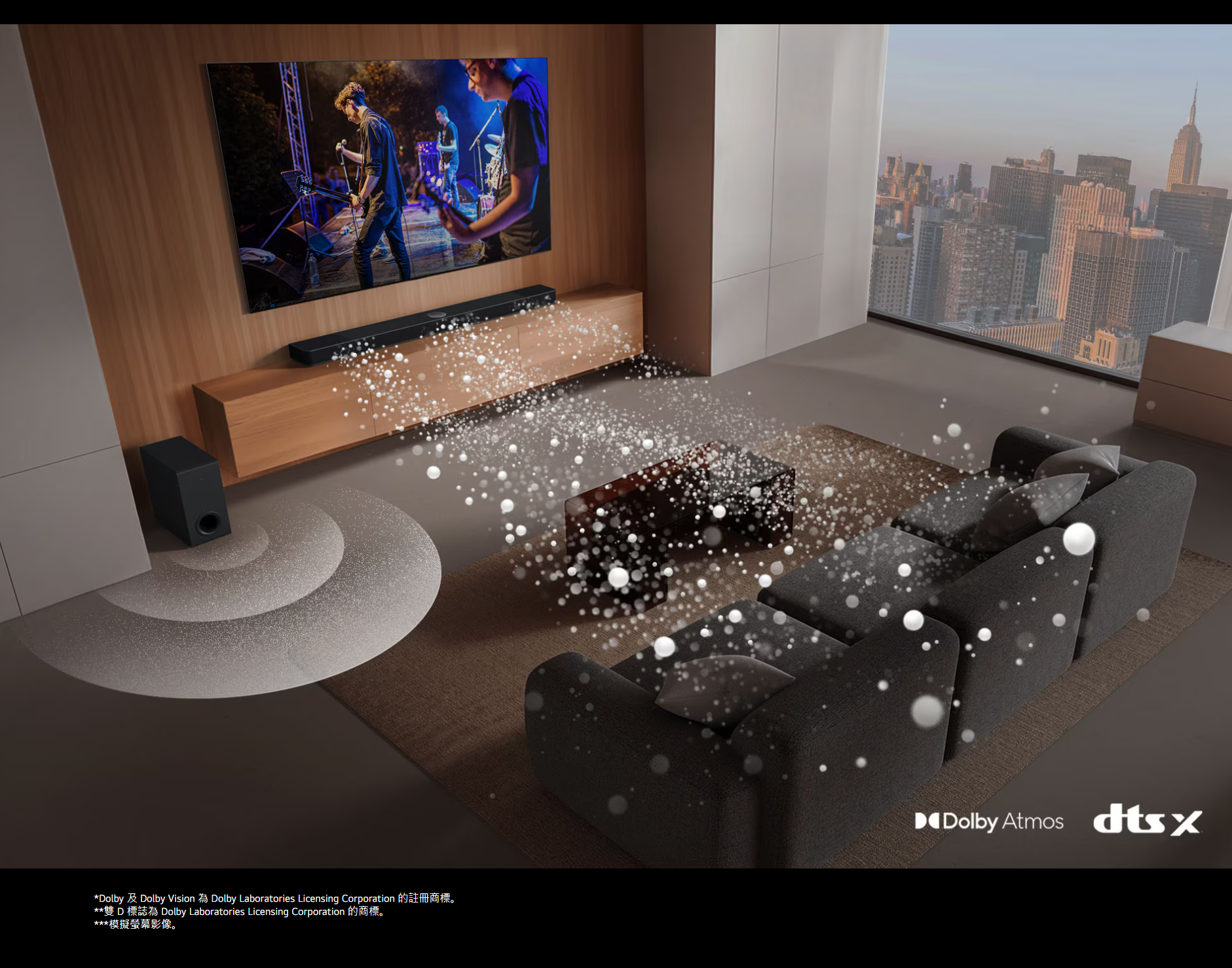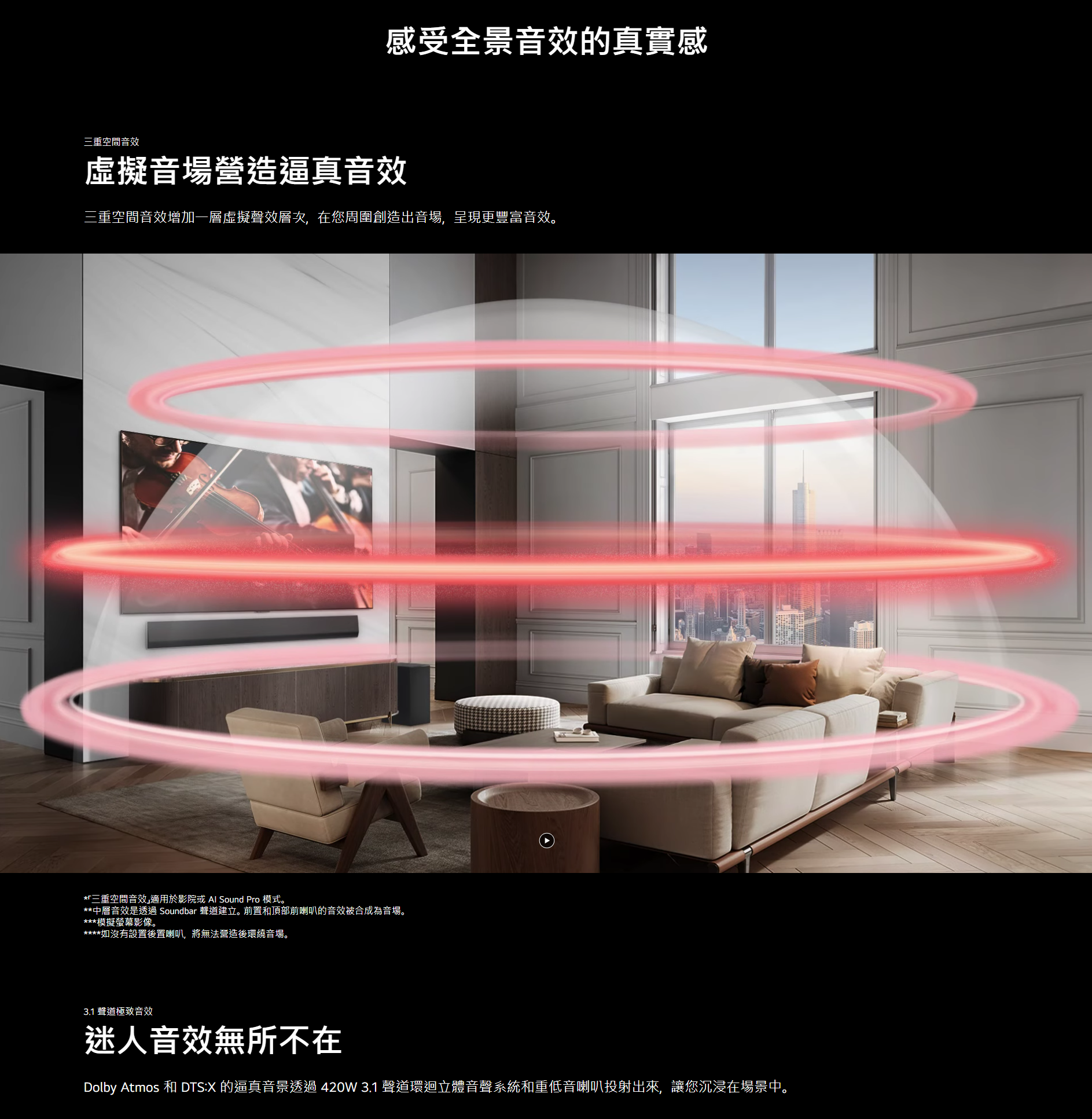 Dolby Atmos 和 DTS:X 的逼真音景透過 420W 3.1 聲道