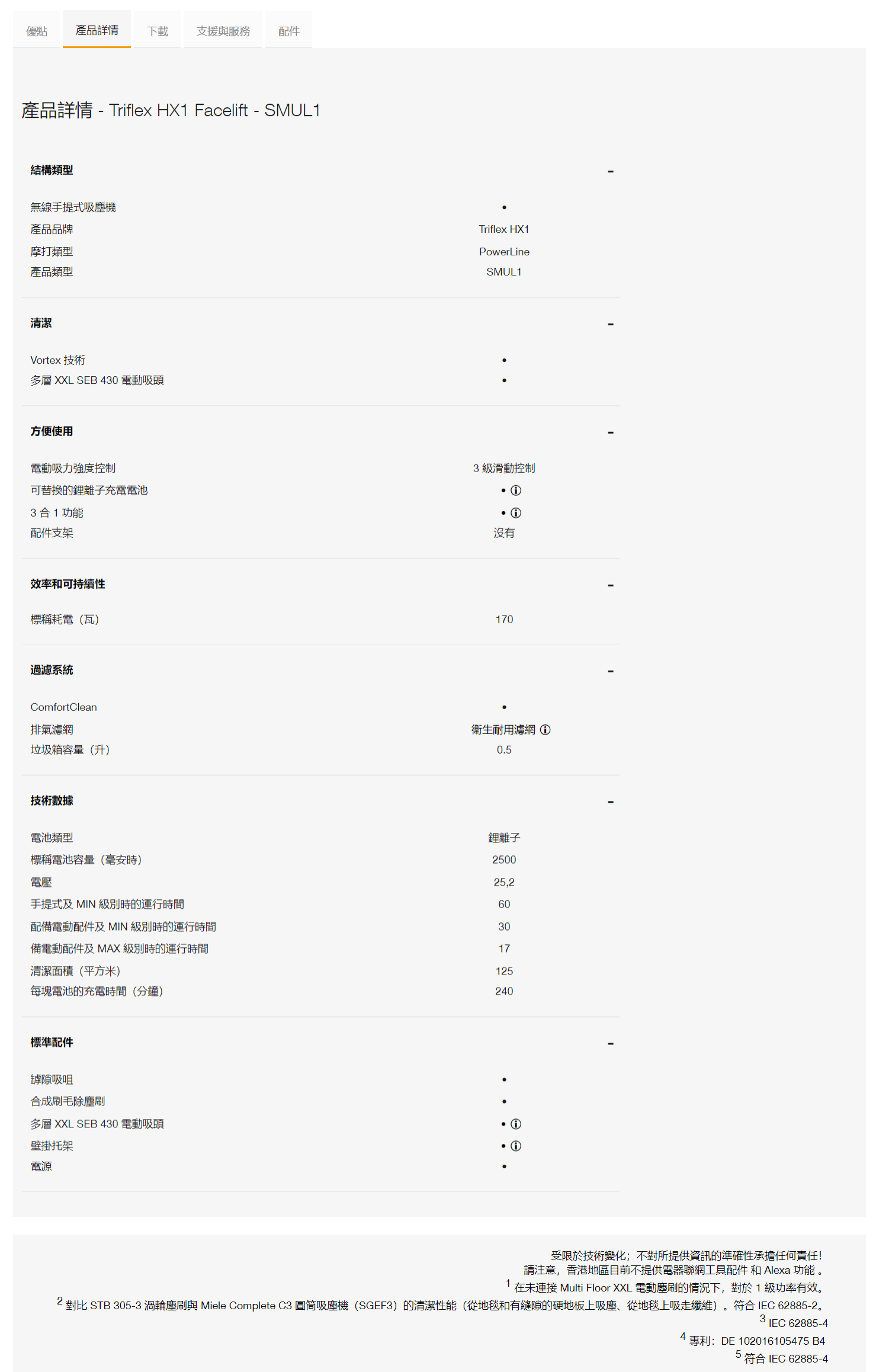 隨機配件:牆掛架/傢俬吸嘴/縫隙吸嘴/除塵刷