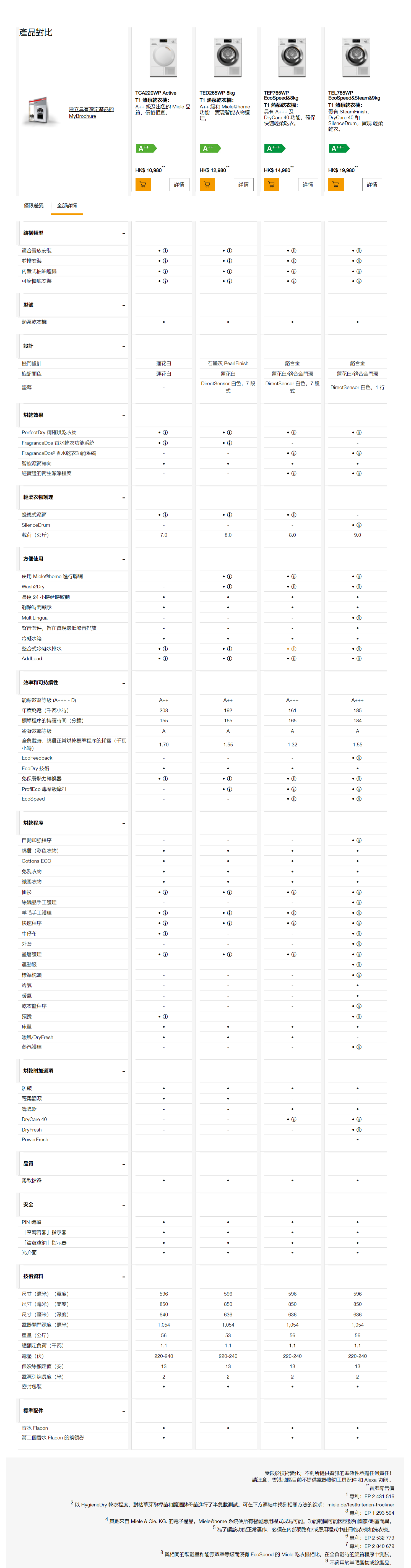 T1 熱泵乾衣機: DryCare 40 和 SilenceDrum,實現柔乾衣。