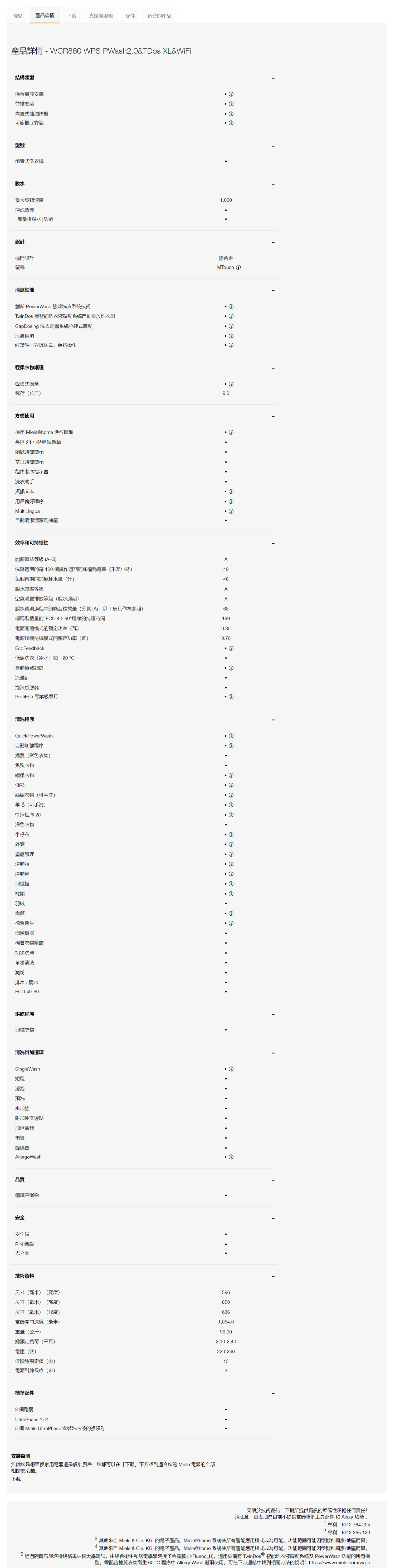 Miele WCR860WPS W1 前置式洗衣機: 滿足最高要求的經濟全能型產品。