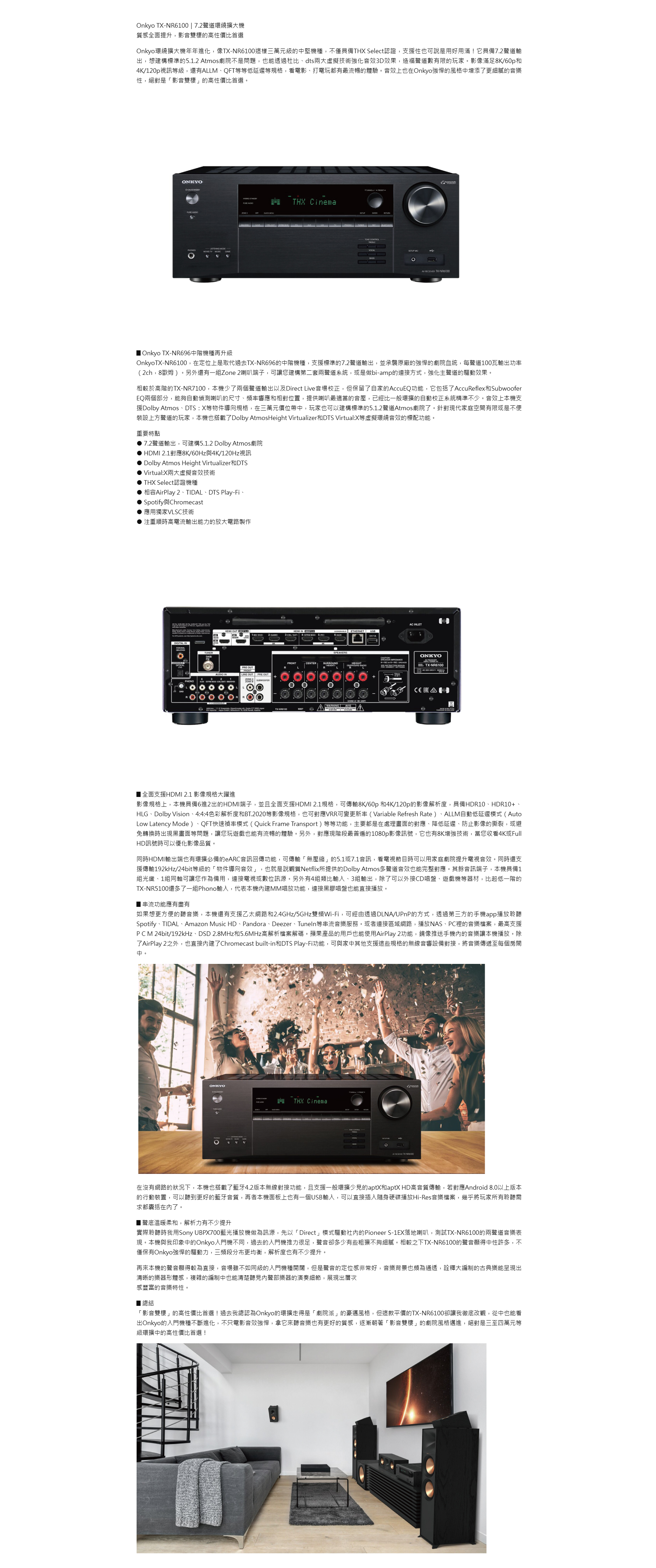 Onkyo 的 TX-NR6100 是一台獲得 THX Select 認證的 7.2 聲道環繞擴大機,