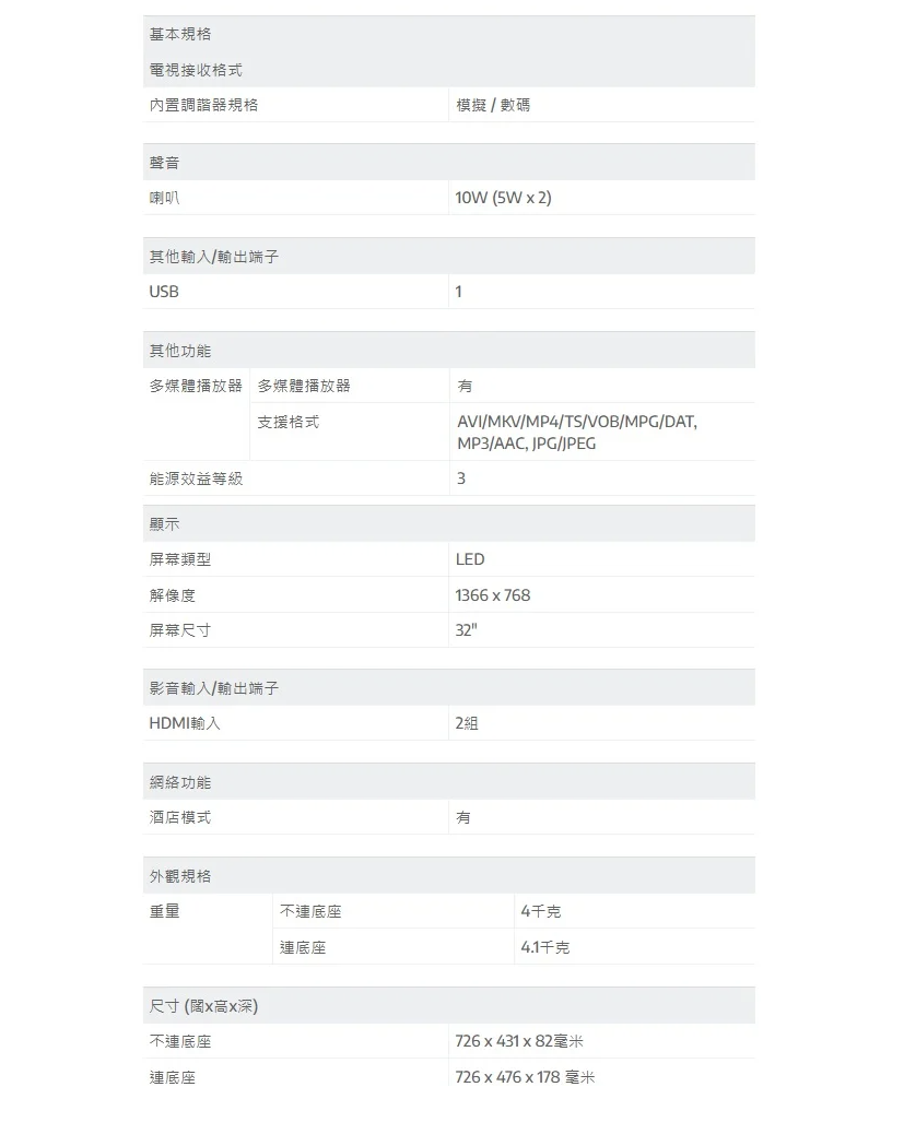 樂聲 Panasonic TH-32M400H 32吋 LED 電視機,