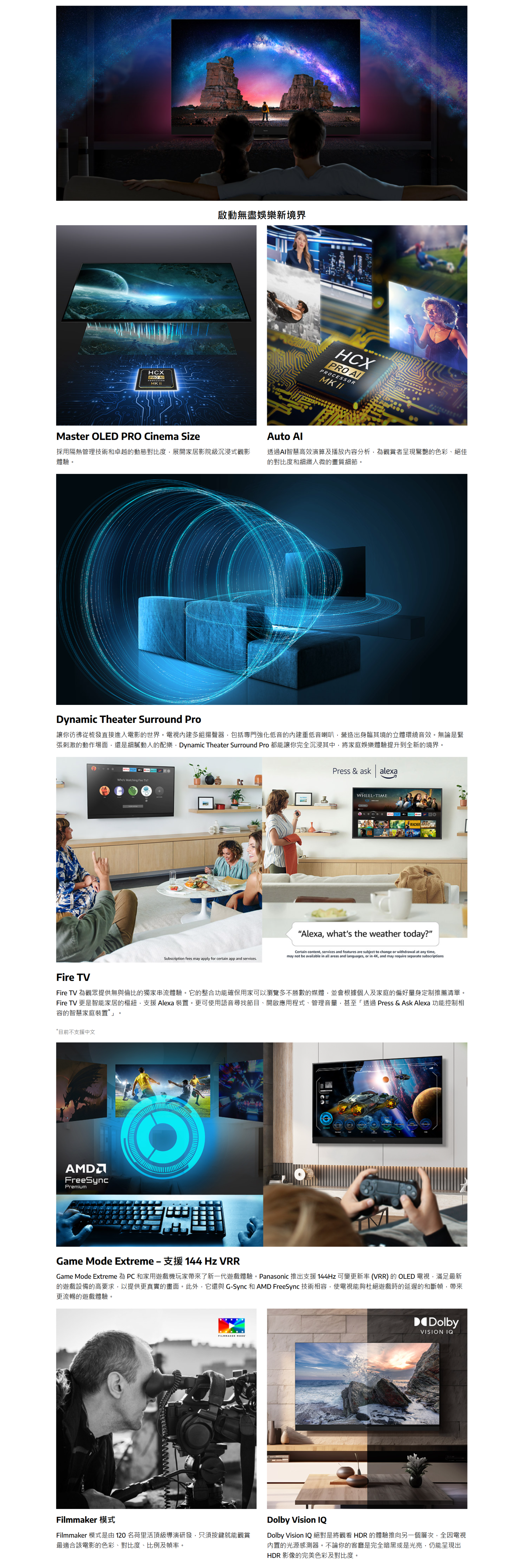 音效和智能功能於一身,是高端家庭影院用家的理想選擇。其採用Master OLED Pro Cinema Size面板,