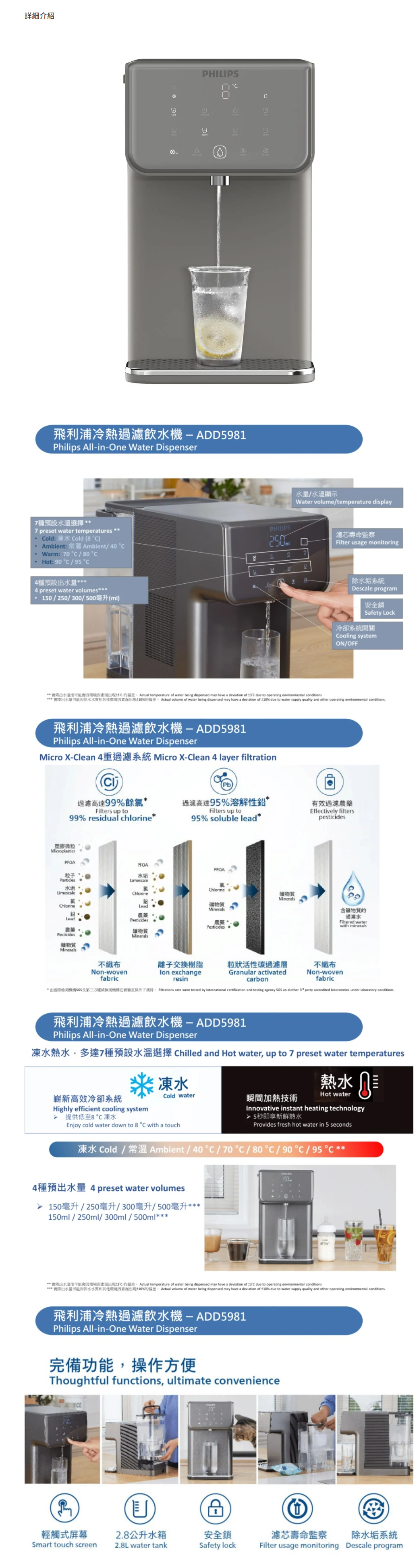 飛利浦 Philips ADD5981GR/90 冷熱過濾飲水機,Micro X-Clean 4重過濾系統: