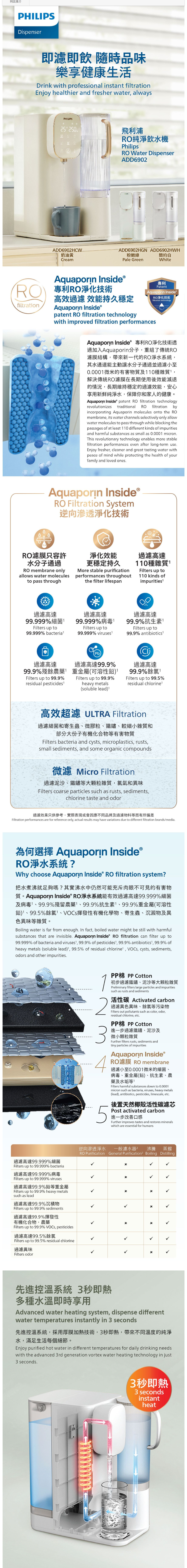 PHILIPS 飛利浦 ADD6902 RO純淨飲水機(綠色) ADD6902HGN01,⭐全新香港行貨 , 原廠兩年保養🚚免費送貨(偏遠地區除外)⭐檯面式設計 尺寸W211 x H398 x D333mm小巧不佔位,4.8L大容量自來水箱+1.3L便攜純淨水壺,適合香港家庭即濾即飲。