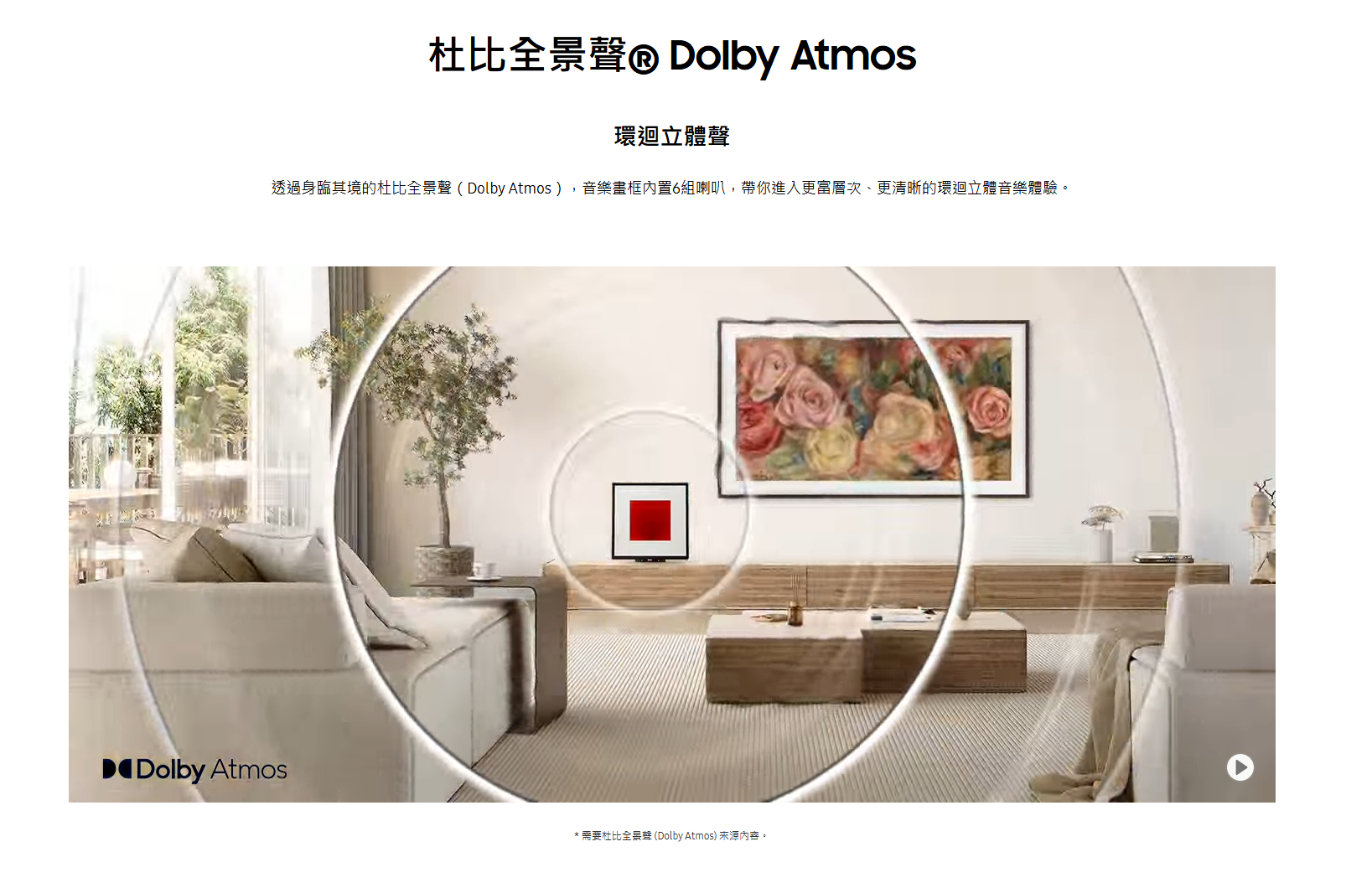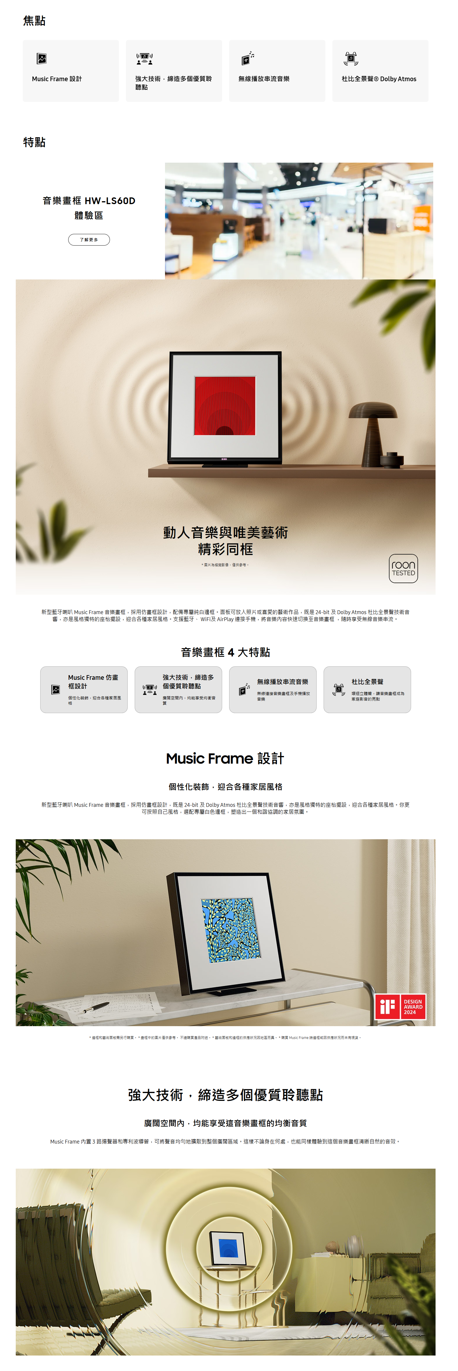 SAMSUNG 音樂畫框 HW-LS60D 結合藝術畫框設計與高質音效,支援 Dolby Atmos 杜比全景聲,