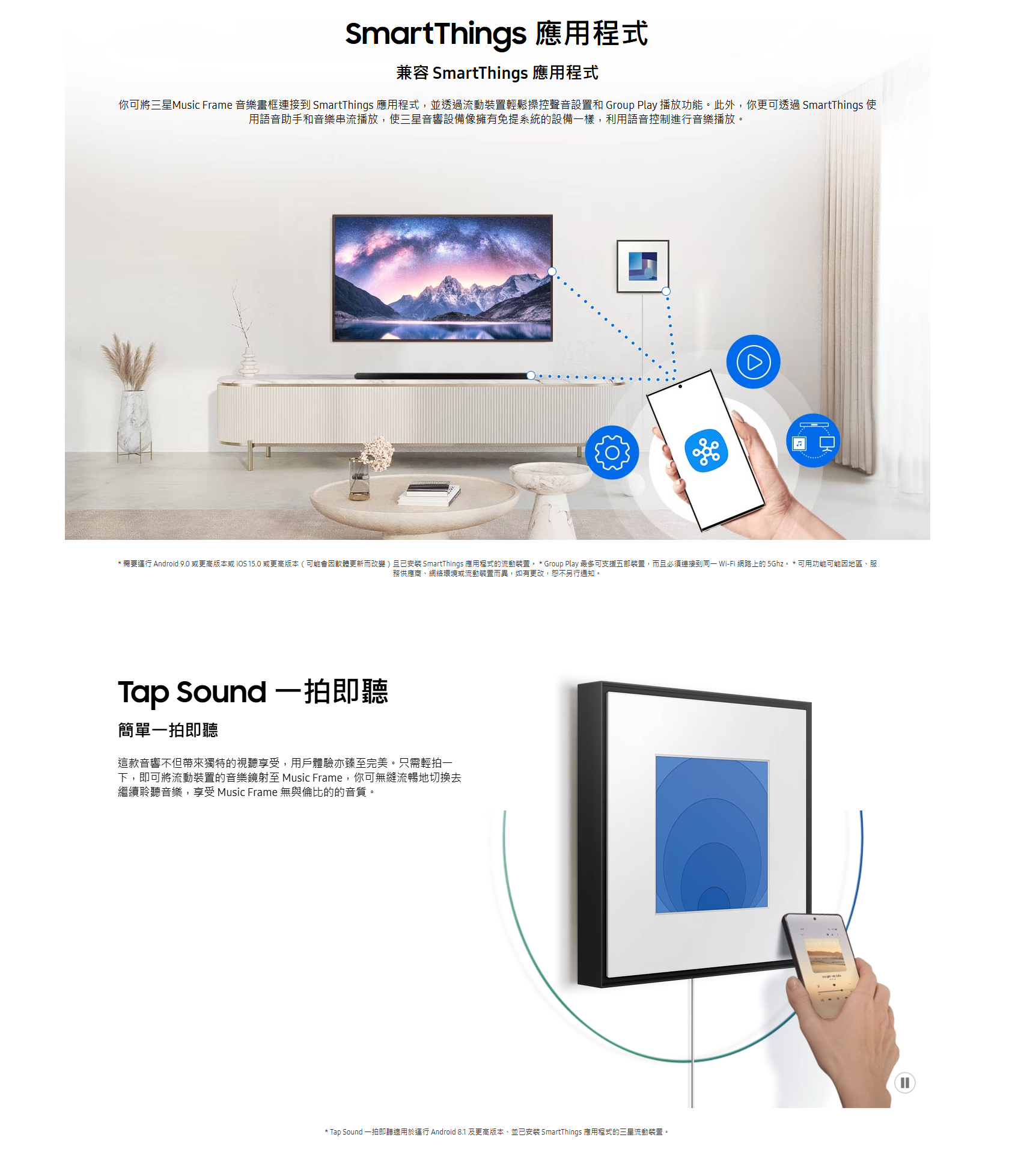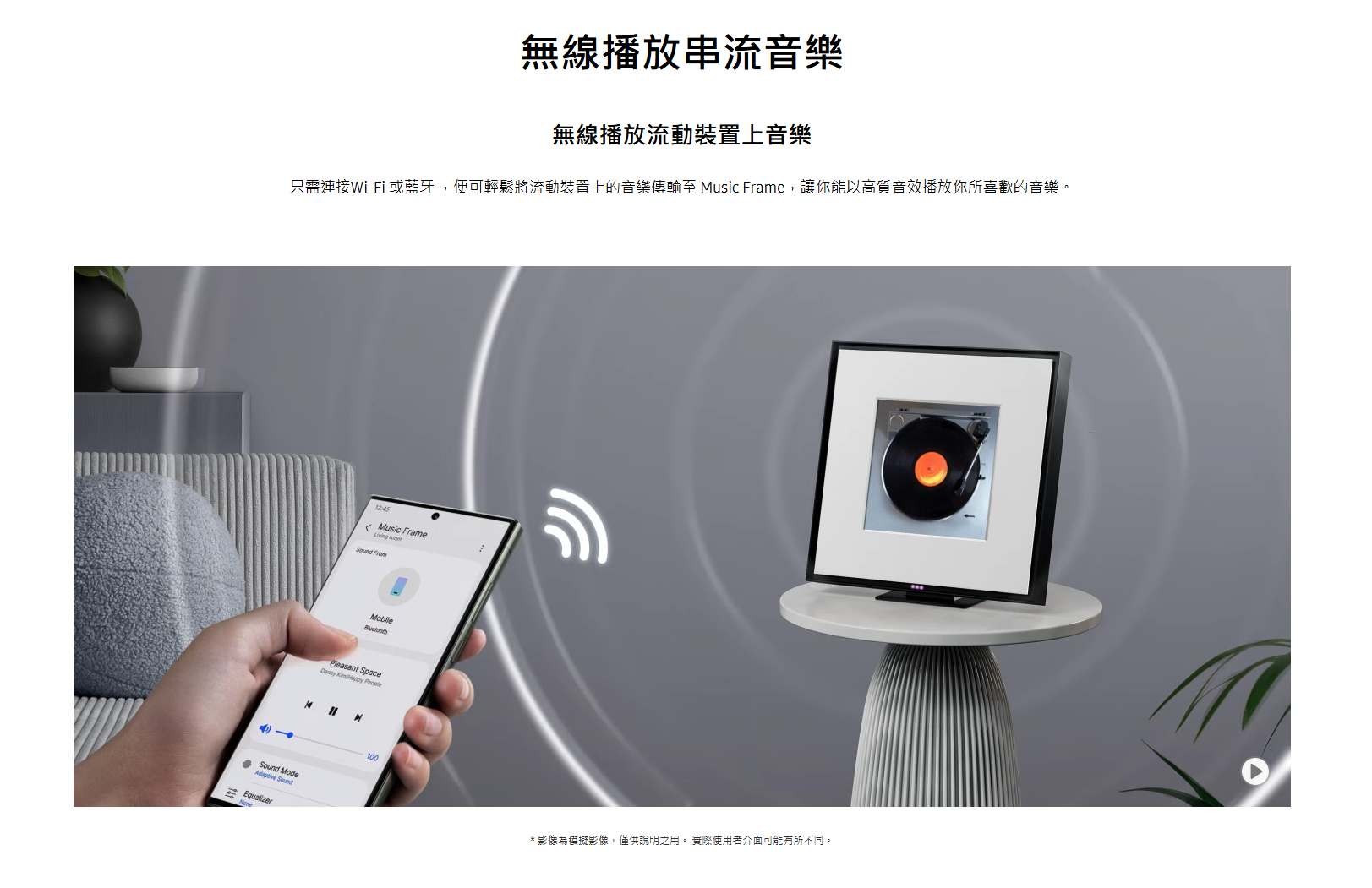 三星畫框喇叭 HWLS60D 更可透過 SmartThings 使用語音助手和音樂串流播放,使三星音響設備像擁有免提系統的設備一樣,利用語音控制進行音樂播放。