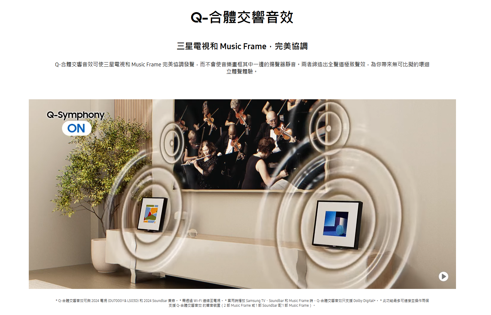 輕鬆串流音樂,Q-合體交響音效更可與三星電視協同發聲,完美融入家居。