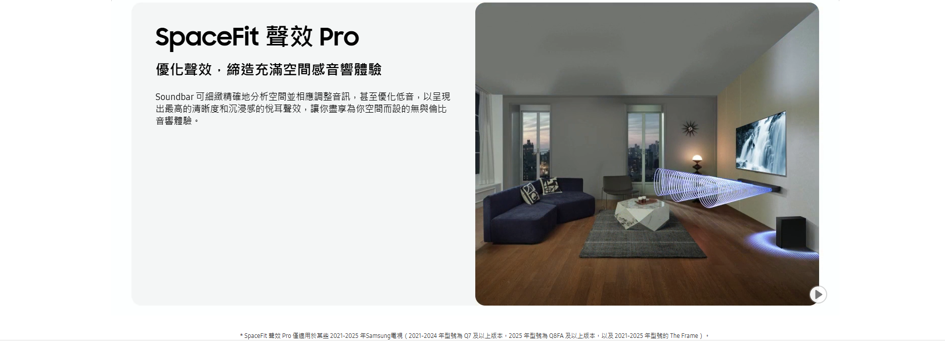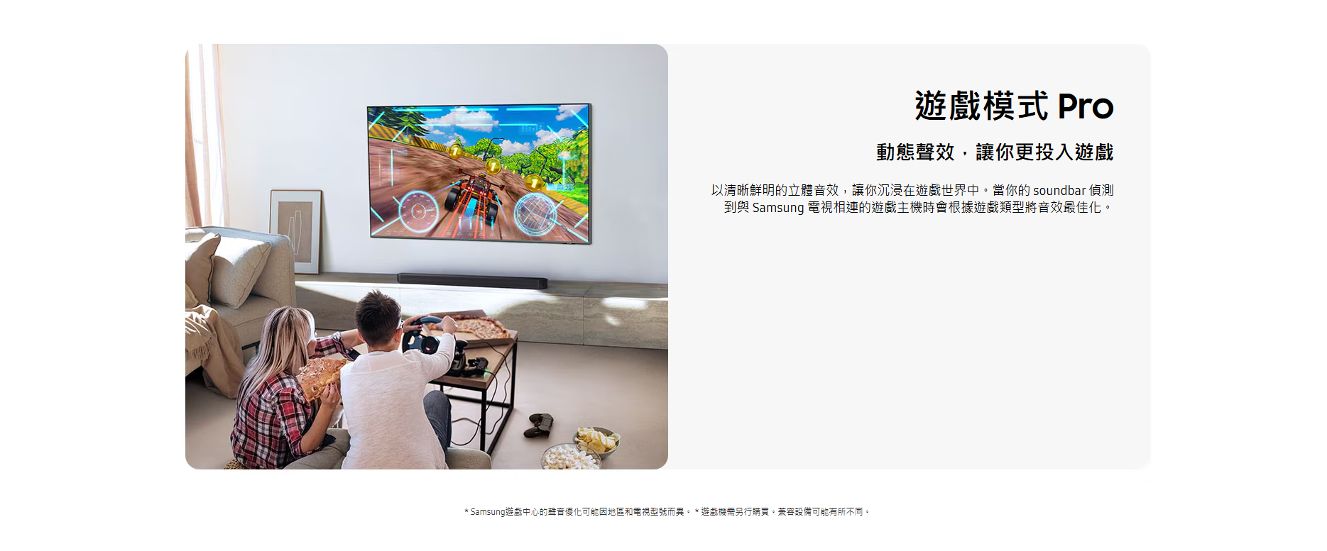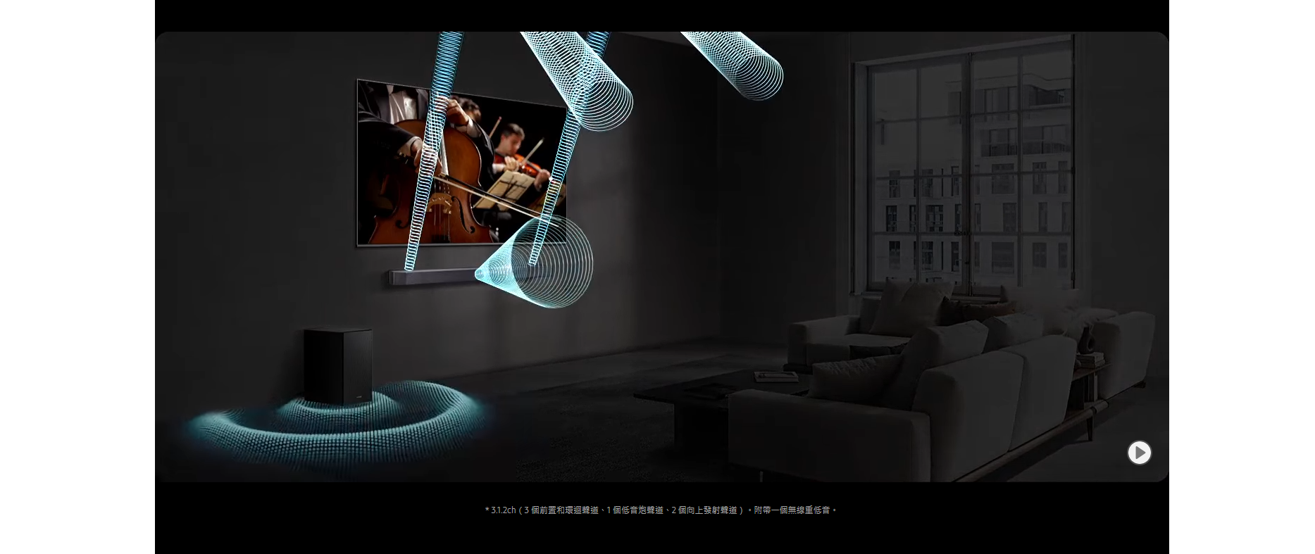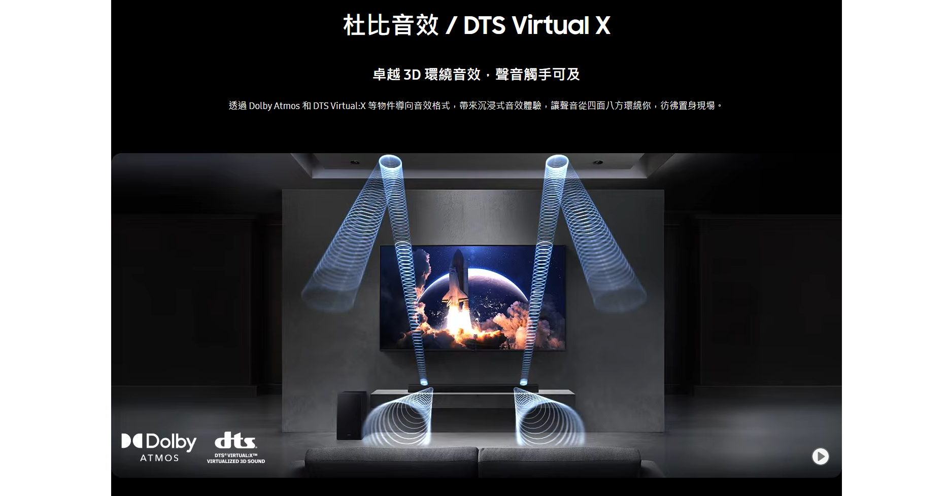 三星 Q-series Soundbar 擁有強勁音效及多功能特色,適合追求高品質家庭影院的人士。其最大優點包括支援 Dolby Atmos 及 DTS Virtual:X 技術,提供震撼 3D 立體聲環繞體驗,兩個 up-firing 喇叭可實現真實的天花聲道效果。Q-Symphony 配合三星電視能智能分配聲音,強化臨場感與清晰度,Adaptive Sound 則根據內容自動優化音效,保持對白清晰,即使低音量也能聽清。