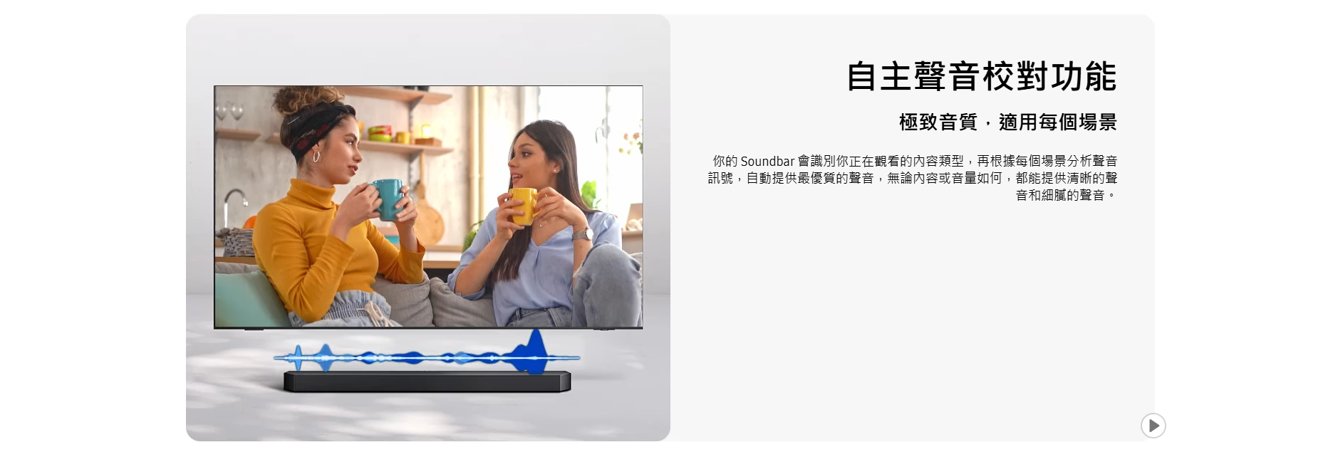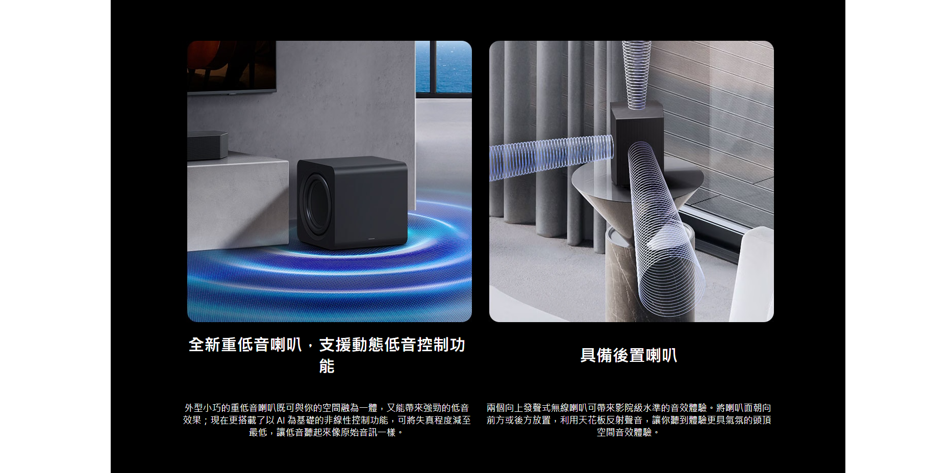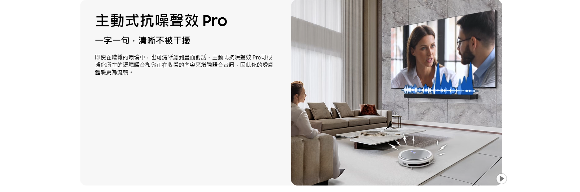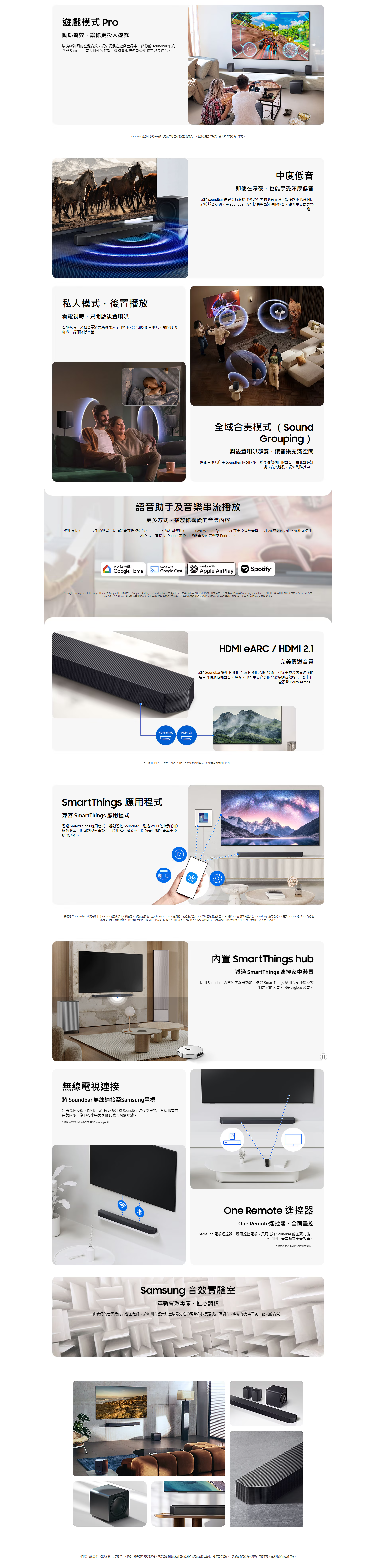 Samsung 亦加入多項 AI 技術,當中 主動式語音放大器 Pro 可實時減少背景雜音,提升人聲清晰度,而外動態低音控制 則可擴展低頻範圍,確保音效平衡低失真。