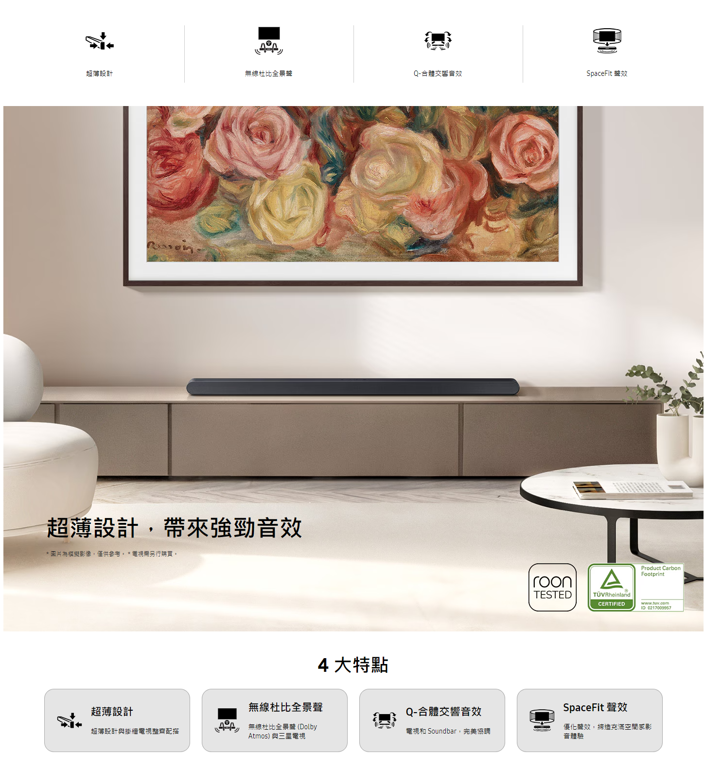 擁有精緻的超薄設計和強大的音效性能,讓您在家中享受影院級的聲音效果。