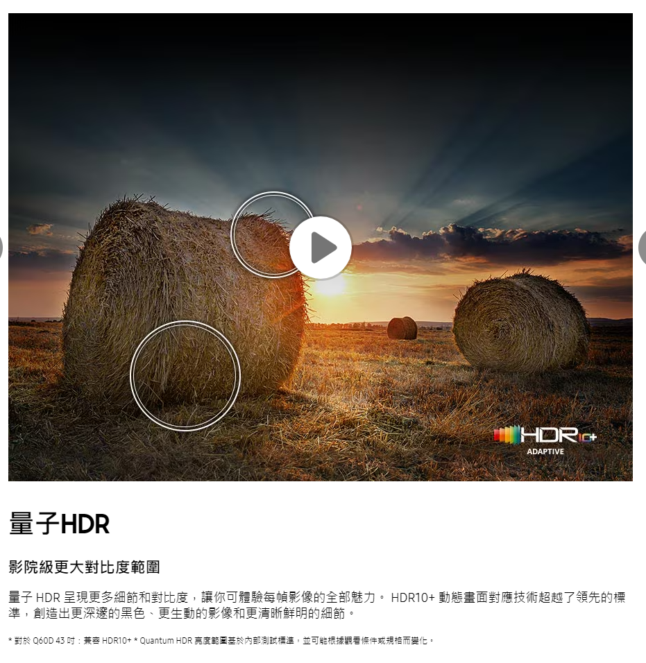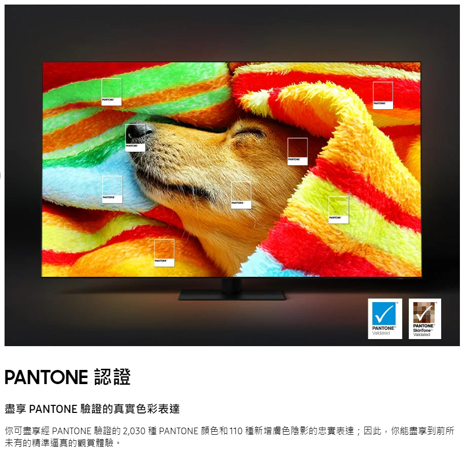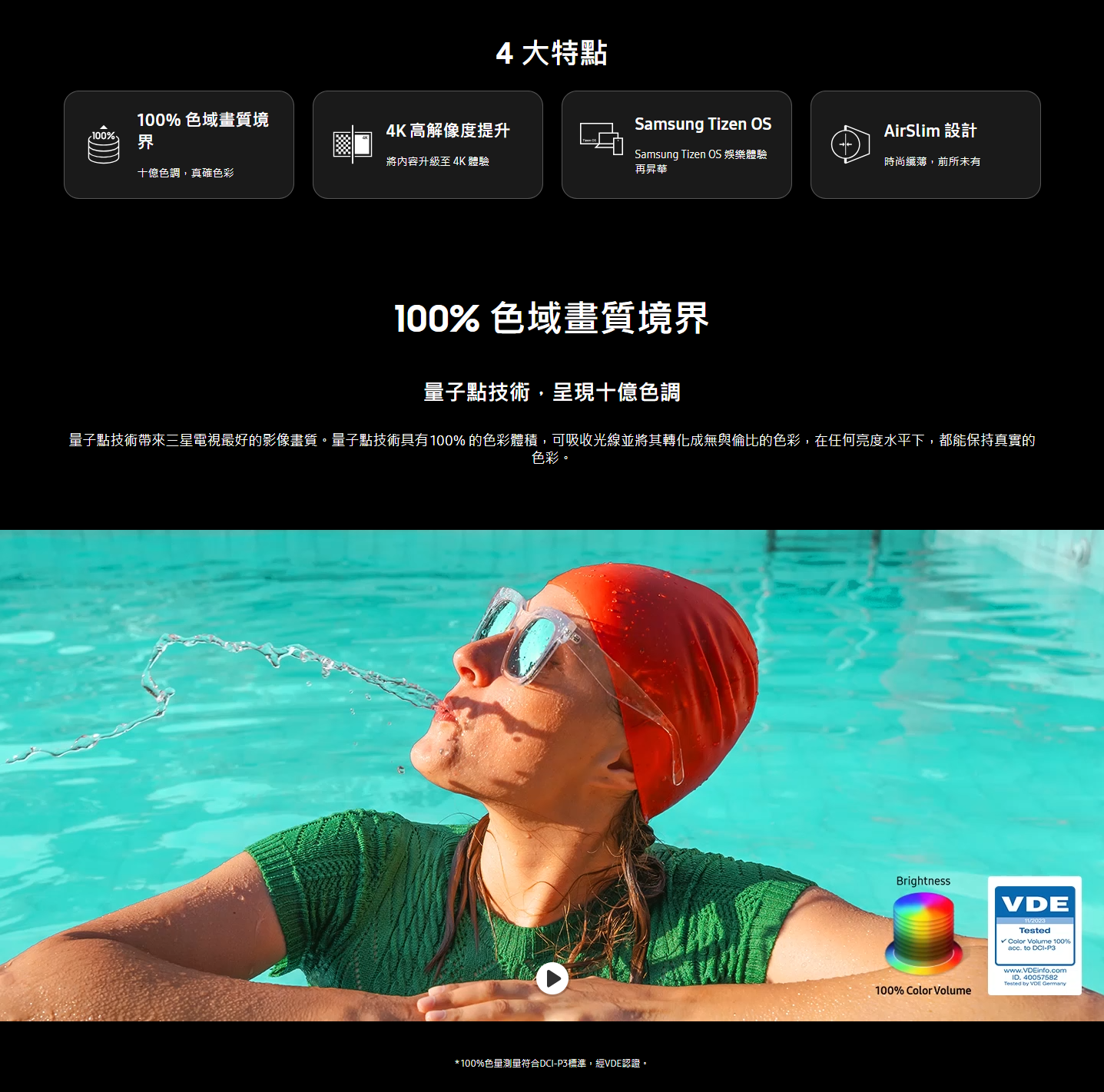 量子點技術具有 100% 色域畫質境界,十億色調,真確色彩