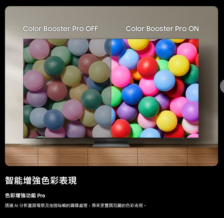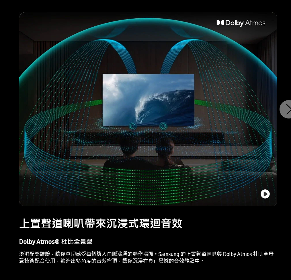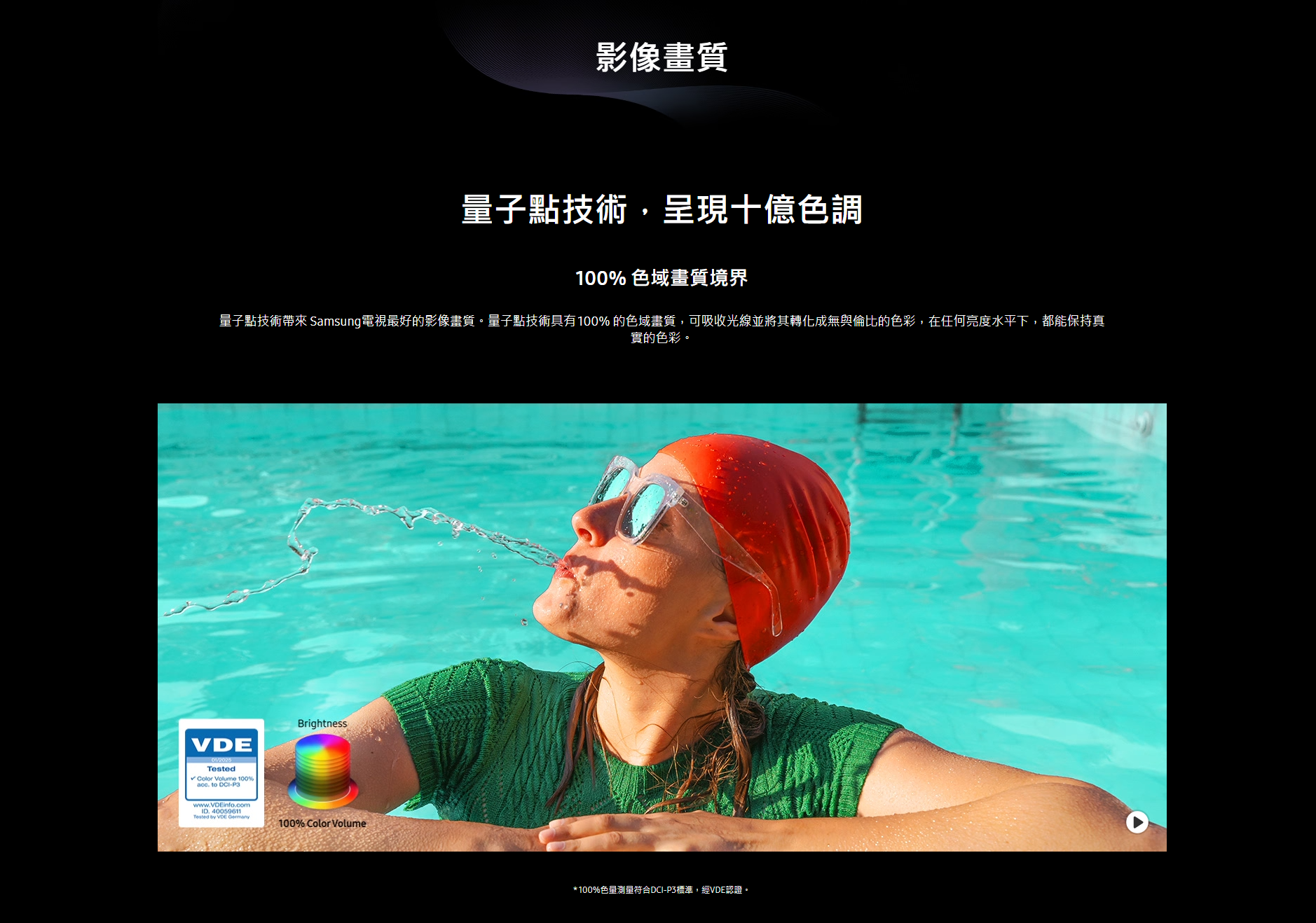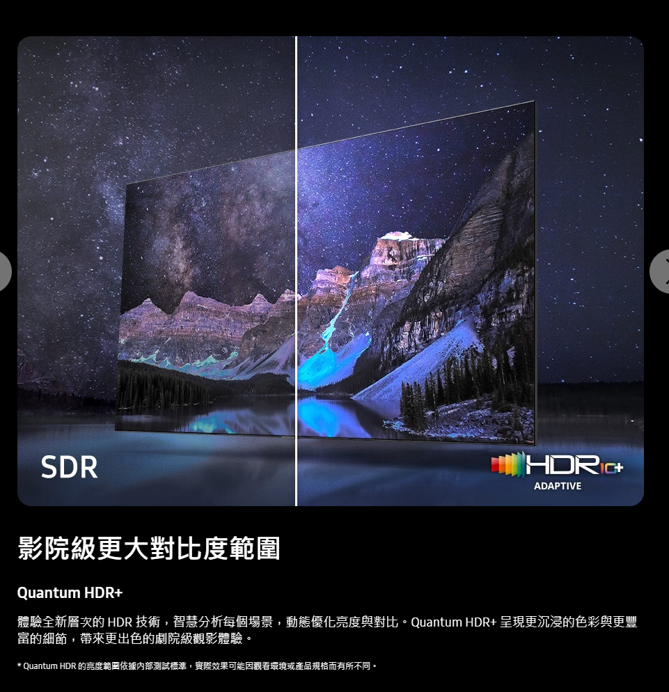 量子點技術帶來100%色域,配合Quantum HDR與HDR10+,全面展現十億色階和高對比度,即使在明亮環境下都能還原真實色彩。