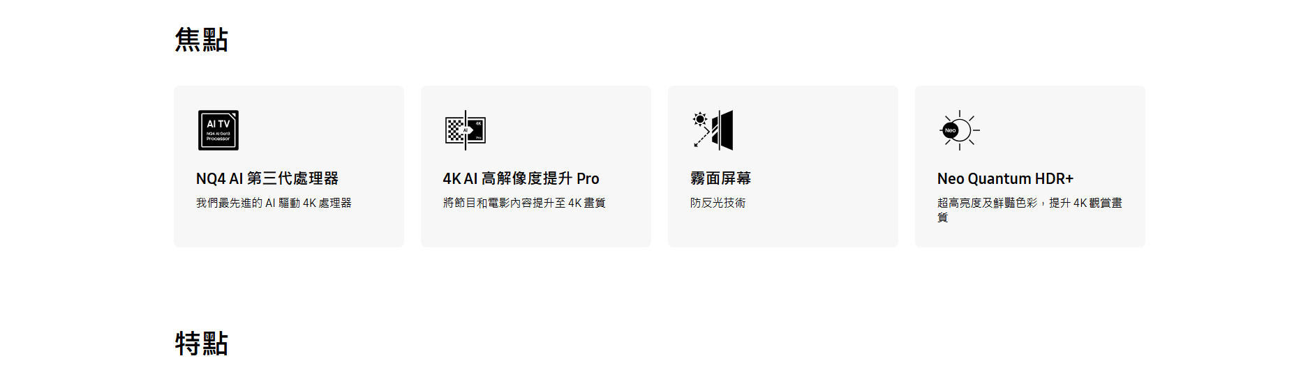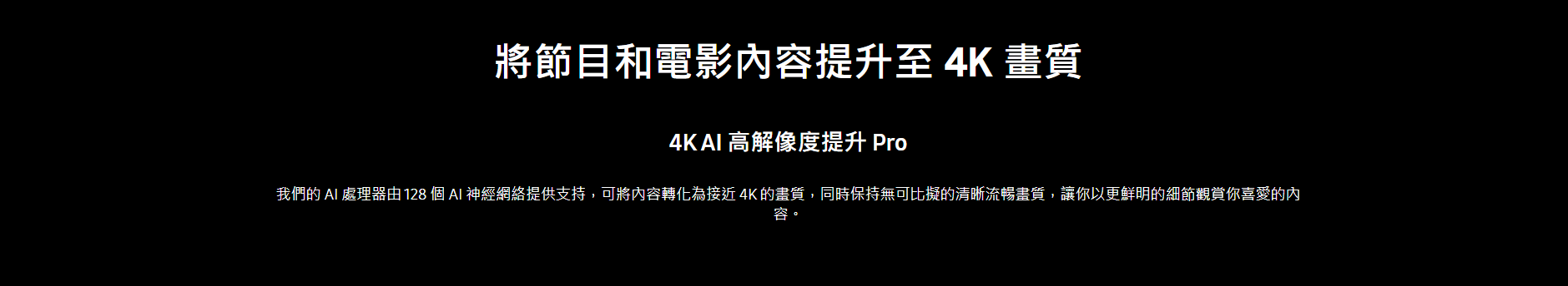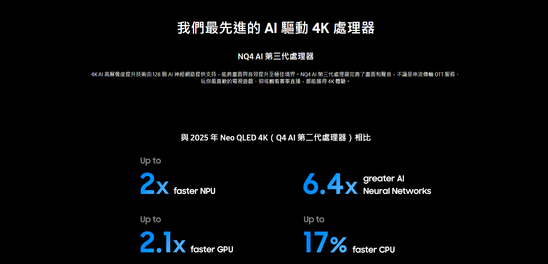 三星 AI 處理器透過 128 種 AI 神經網絡,可將內容轉化為接近 4K 的畫質,
