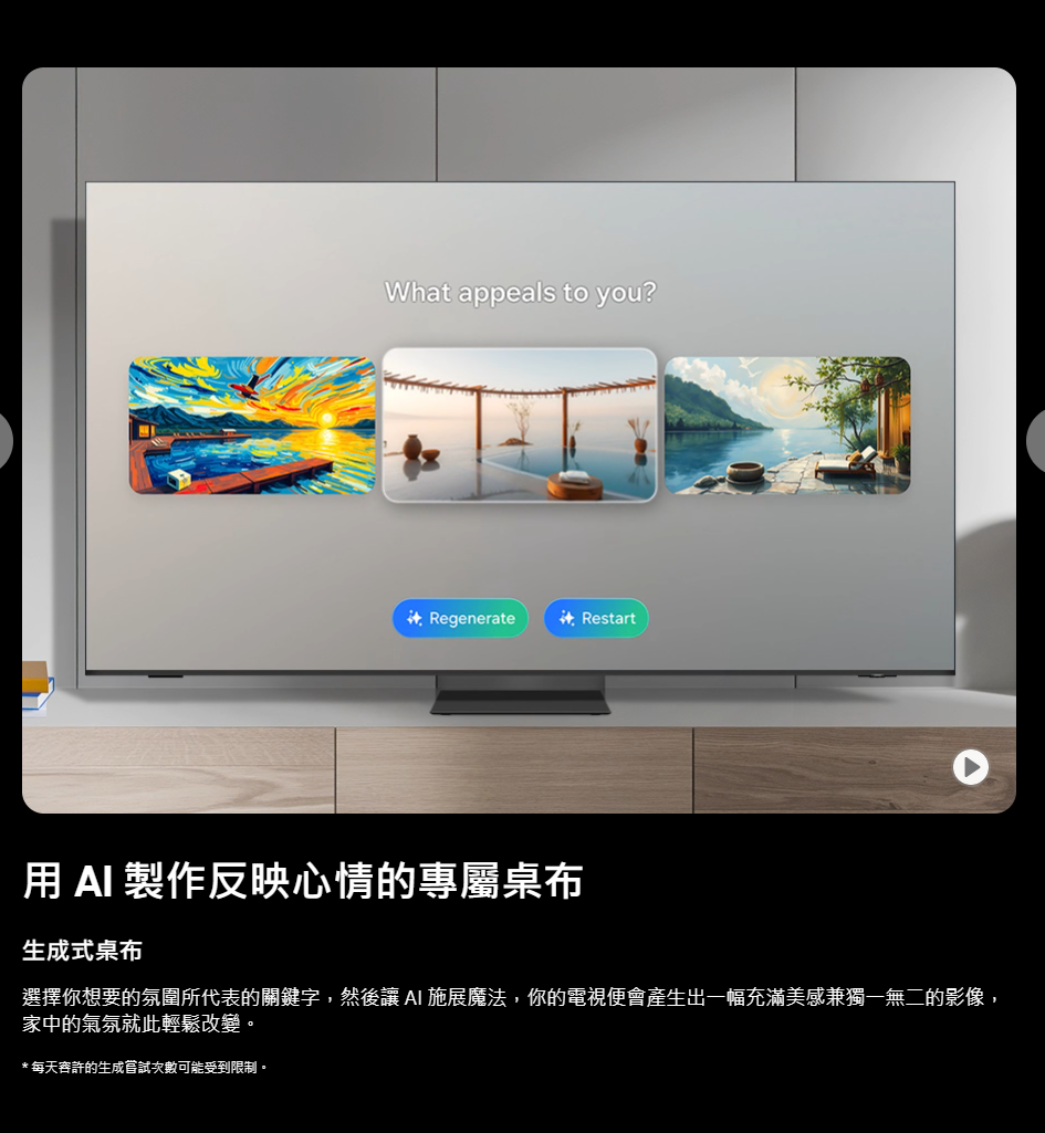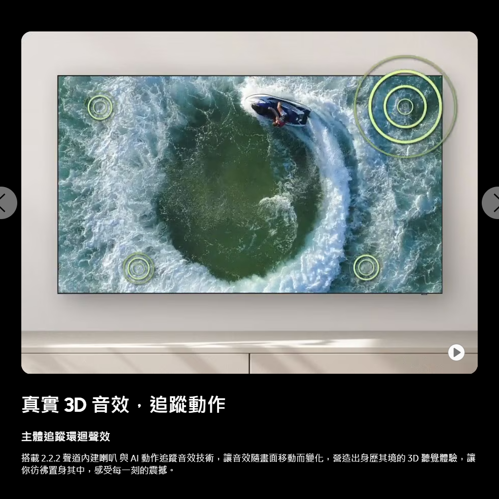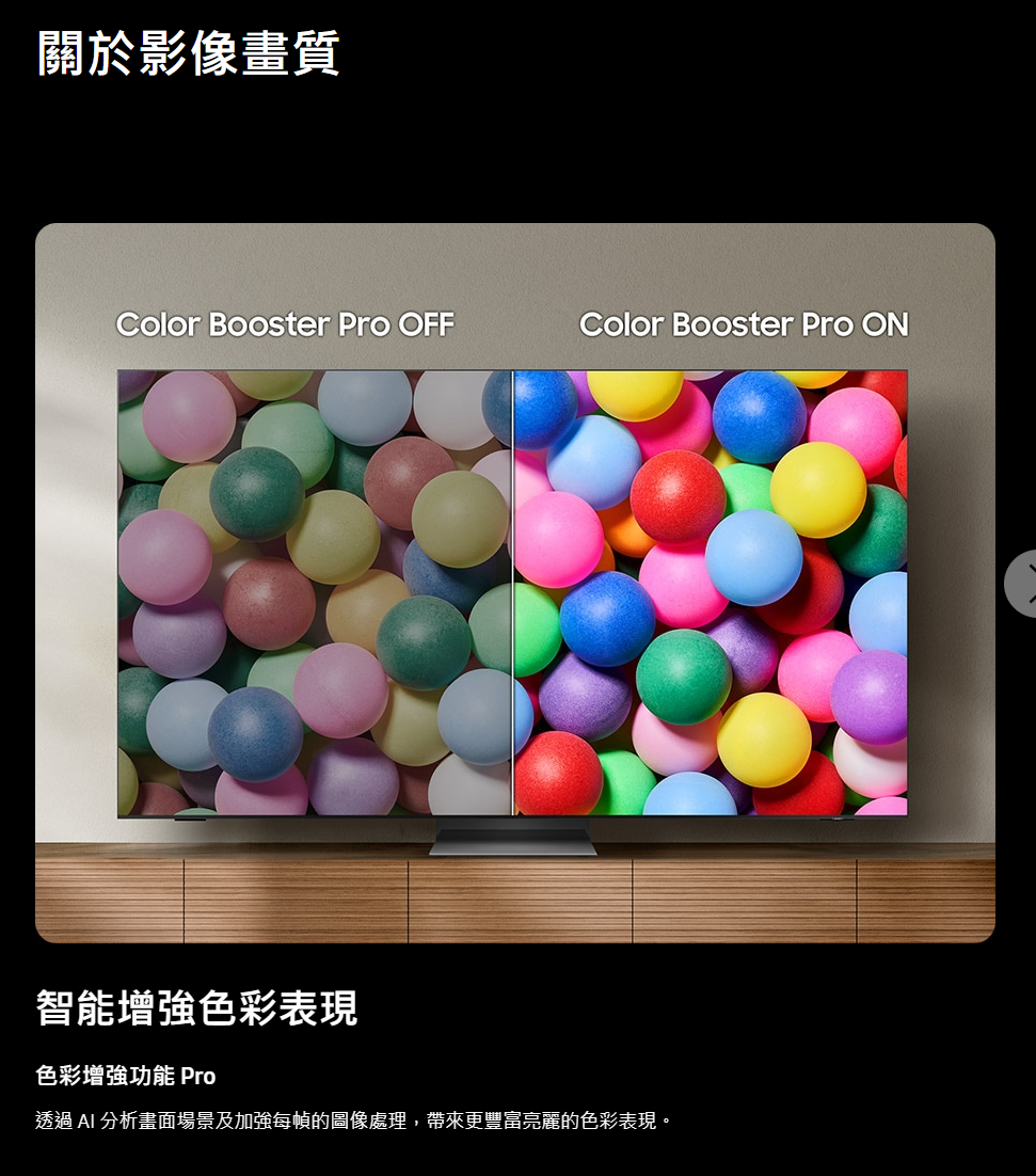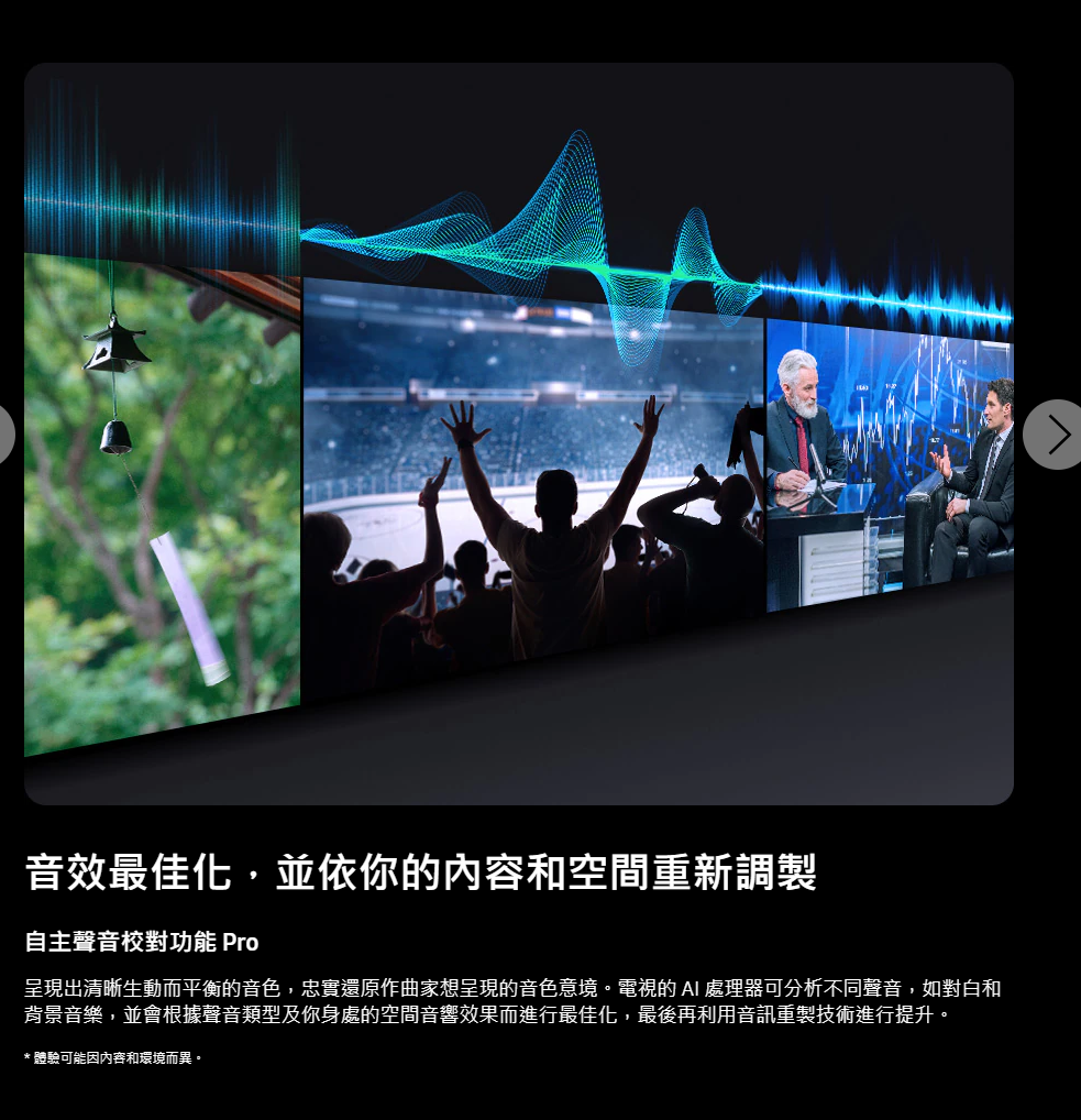 與第二代NQ4 AI處理器,帶來極致細緻影像。量子點 Mini LED技術實現超精細光控,呈現更深黑位與非凡亮度,
